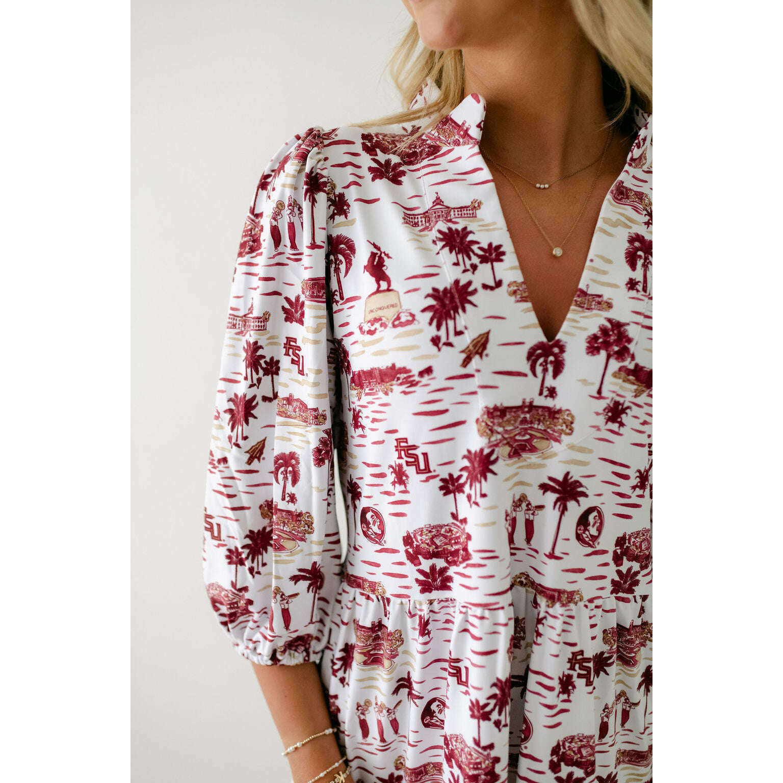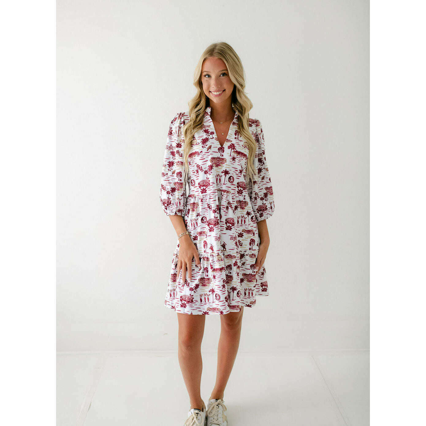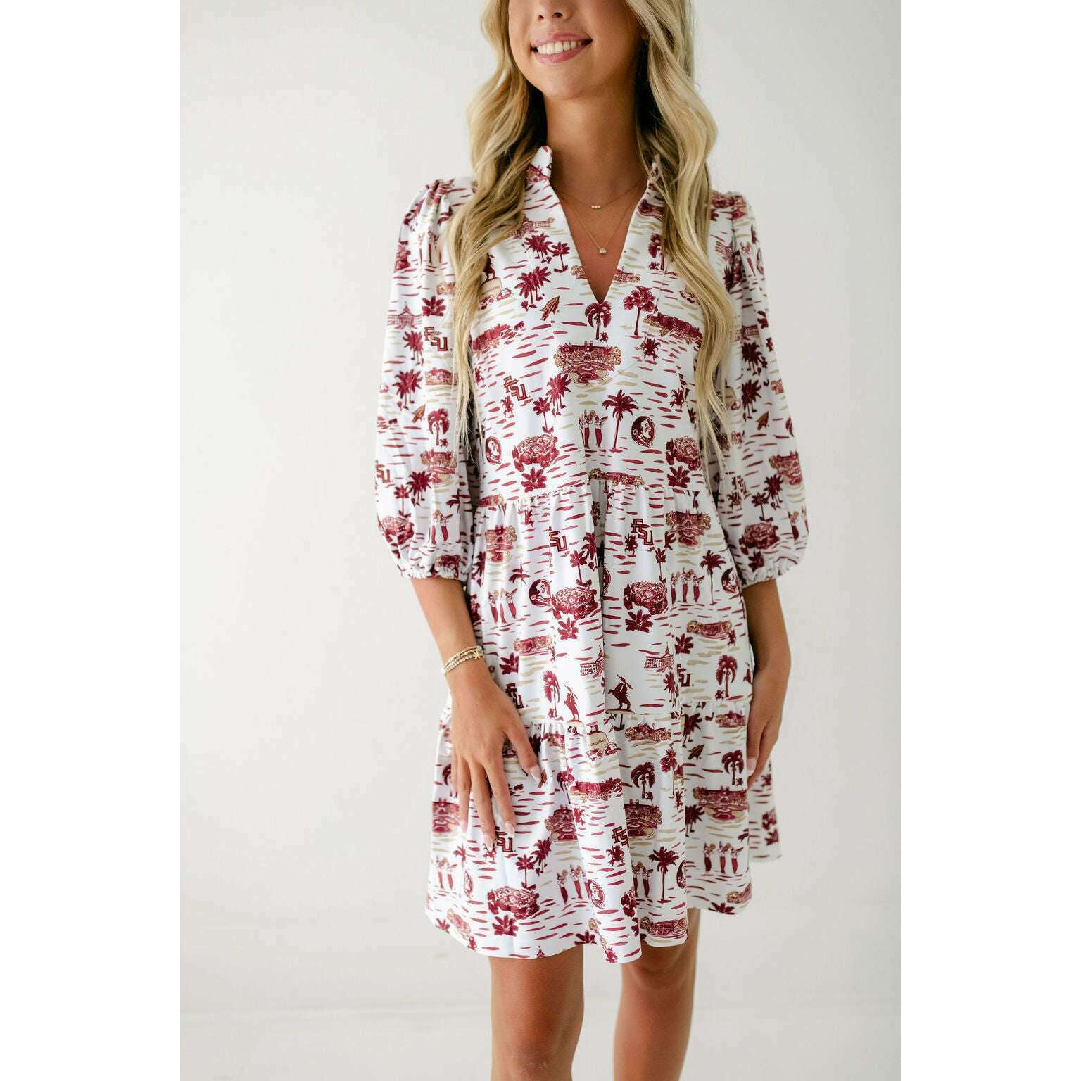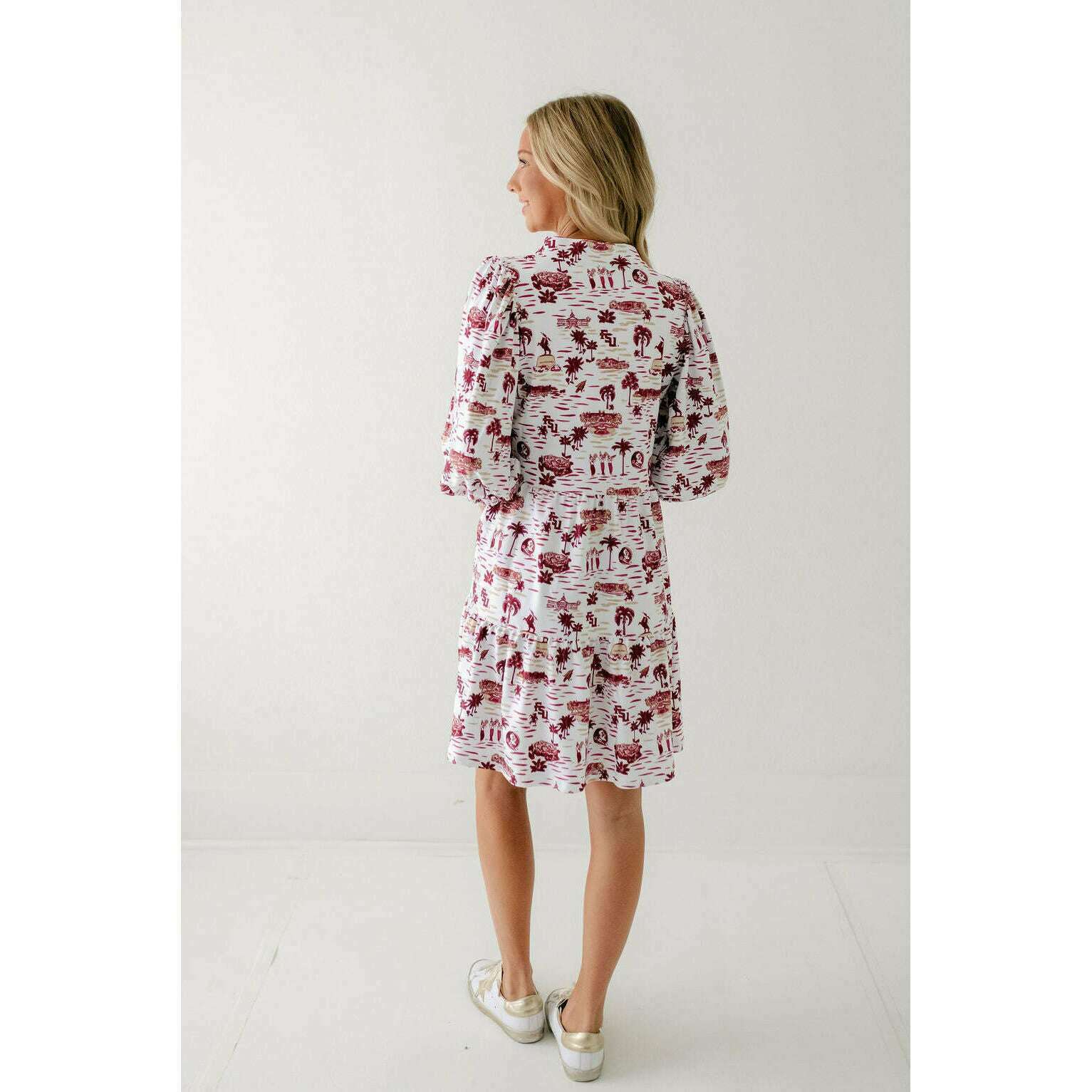 Celebrate game day in style with the Smith & Quinn Tory Dress in FSU Toile. This charming dress features a playful yet elegant design inspired by Florida State University motifs, making it a perfect fit for spirited fans. Its flattering silhouette and unique print combine to create a standout look that’s both comfortable and eye-catching. Whether cheering from the stands or at a tailgate, this dress effortlessly blends team pride with feminine flair. Make your game day outfit memorable and stylish with this must-have Tory Dress.