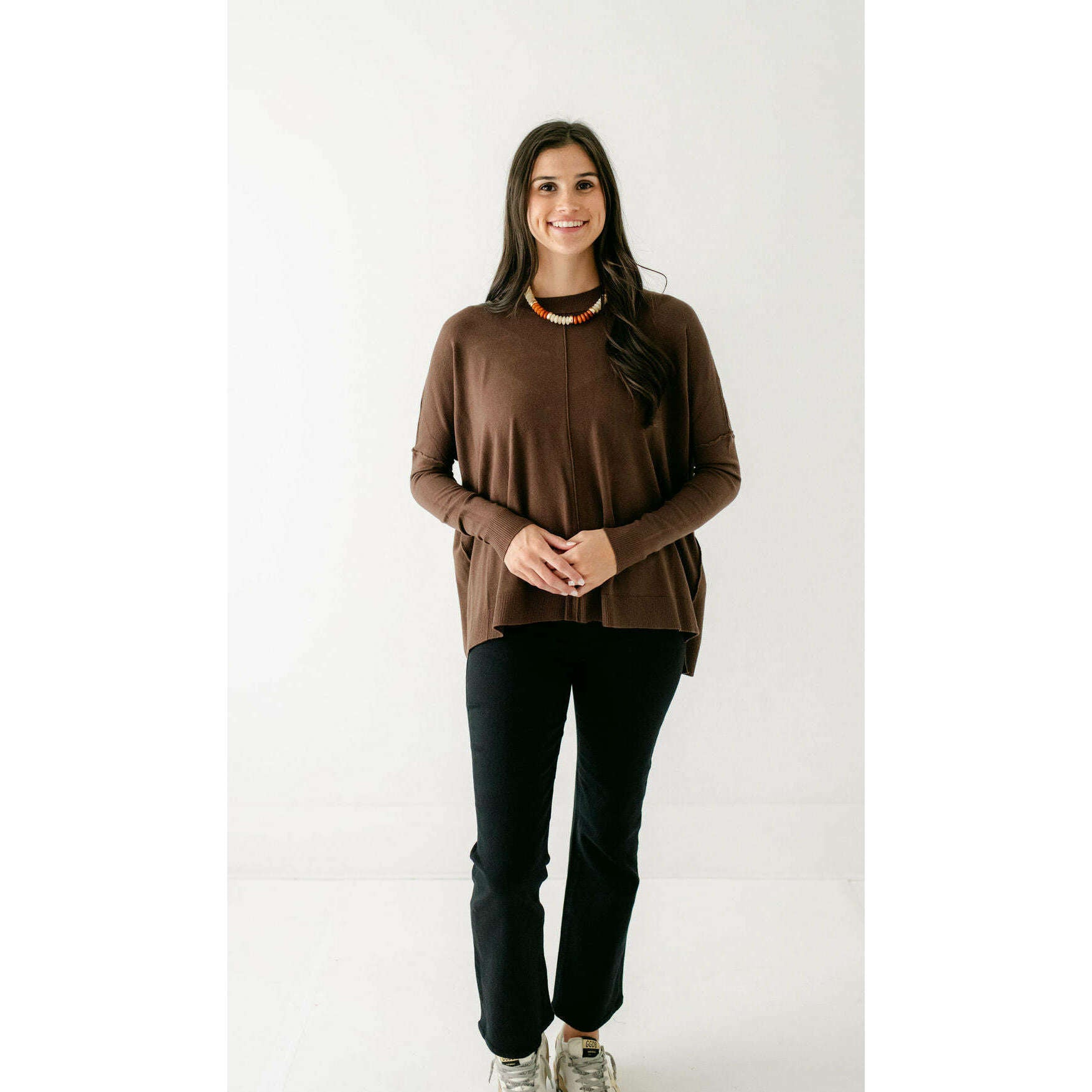 The Karlie Novelty Cashmere Blend Sweater in Chocolate is back by popular demand. Crafted from an exceptional cashmere blend, this sweater delivers unmatched softness and warmth without compromise. The sophisticated olive shade complements any outfit, while the novelty design ensures you'll stand out with understated style. Customers adore this piece for its luxurious feel and versatile appeal.