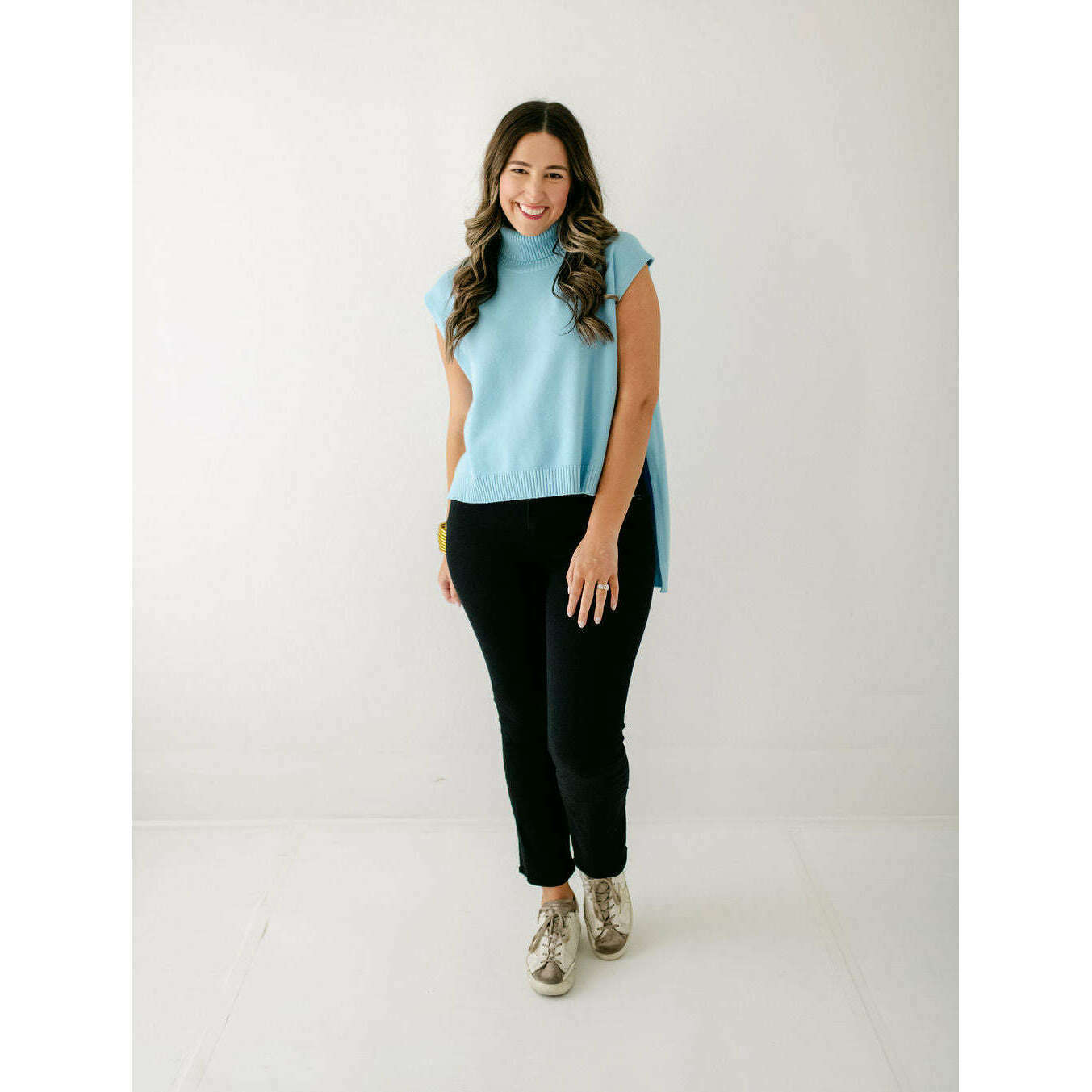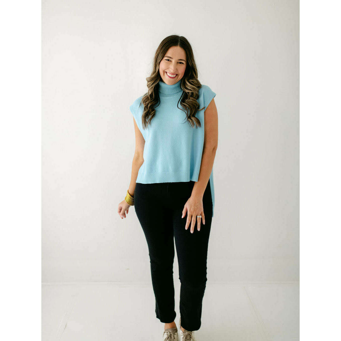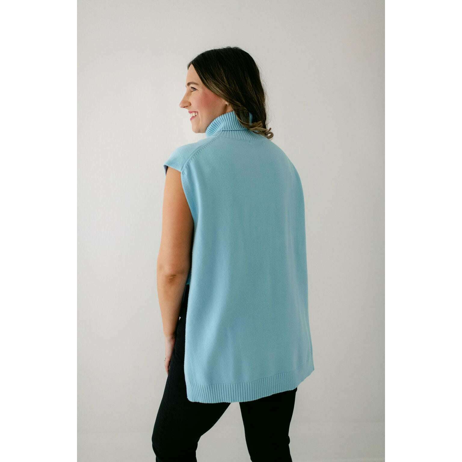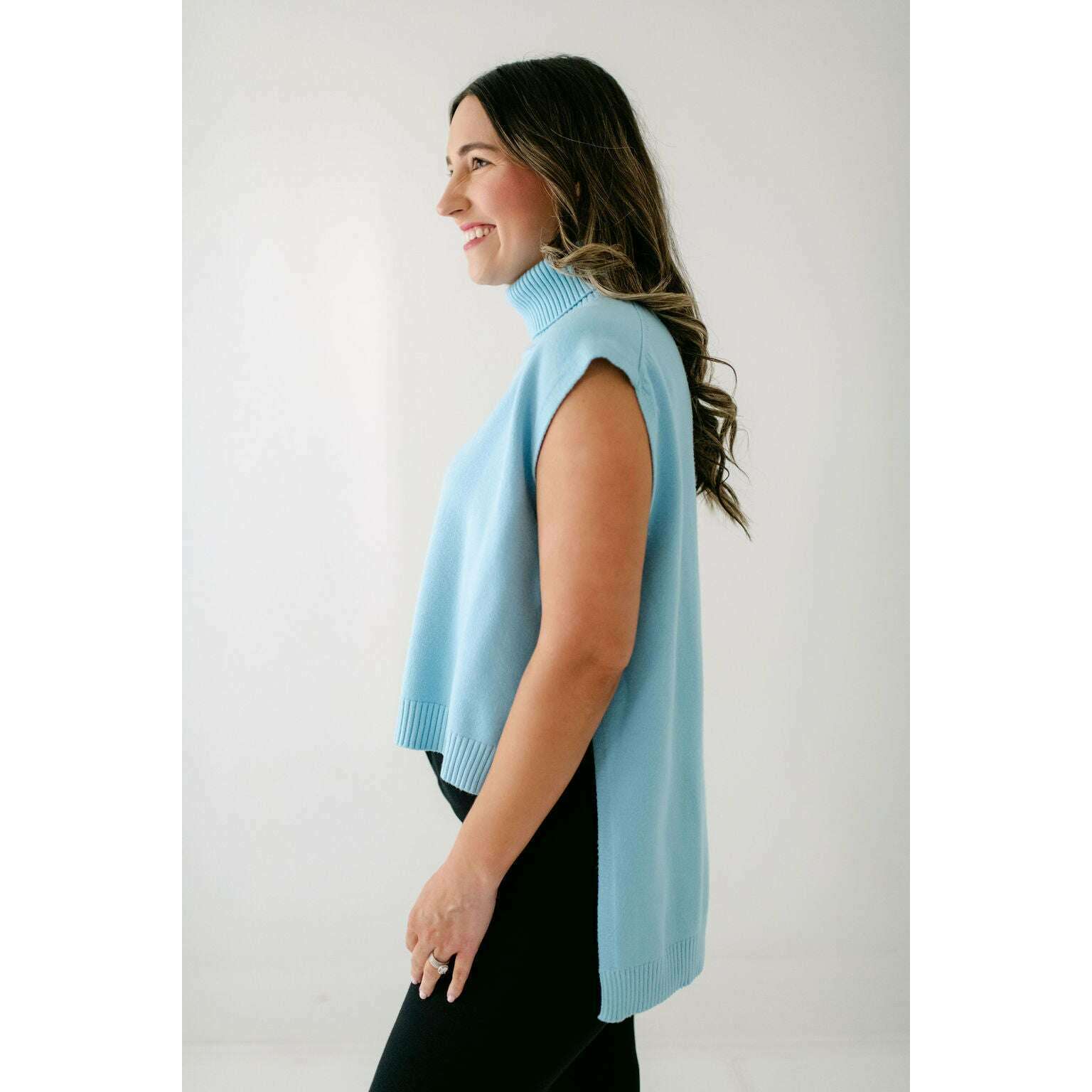 Karlie Turtleneck Sleeveless Hi/Lo Sweater in Sky Blue