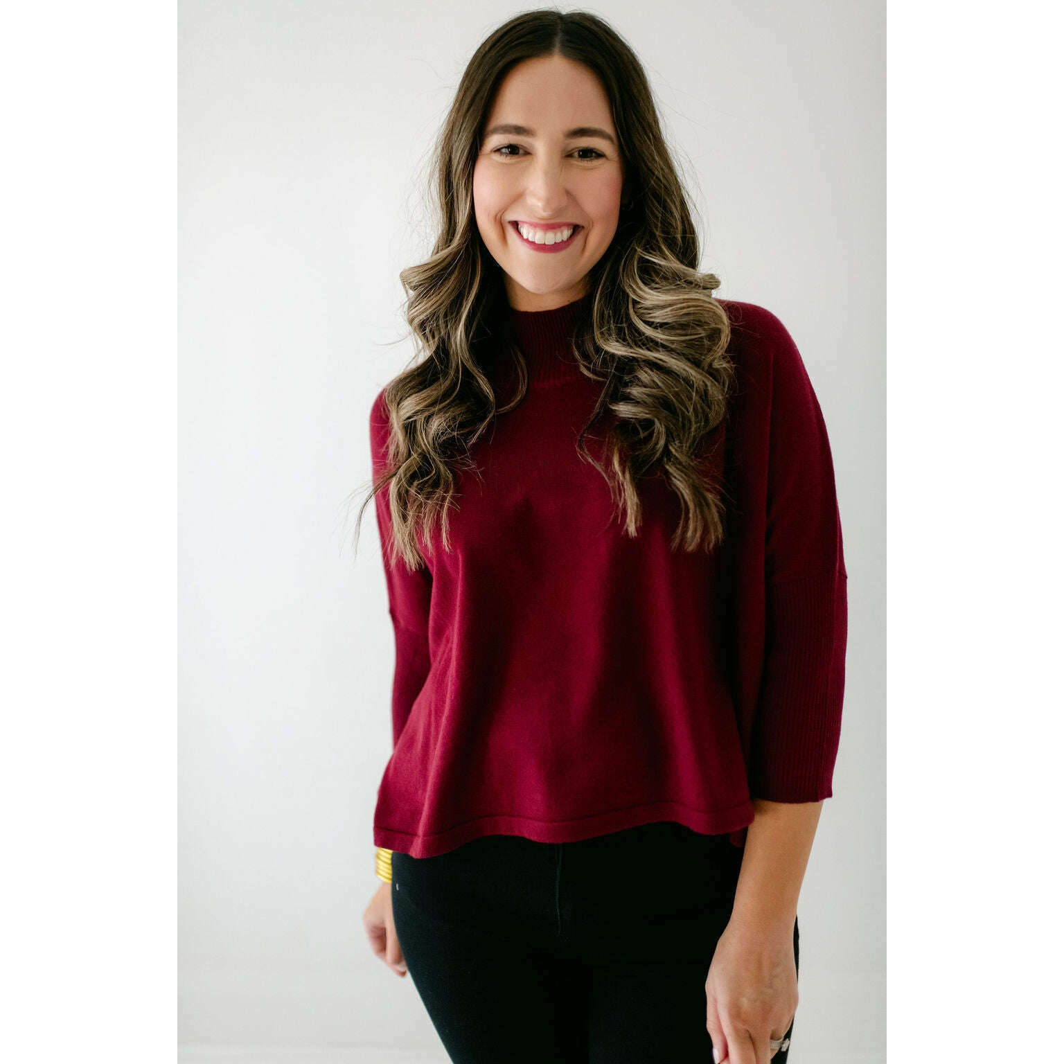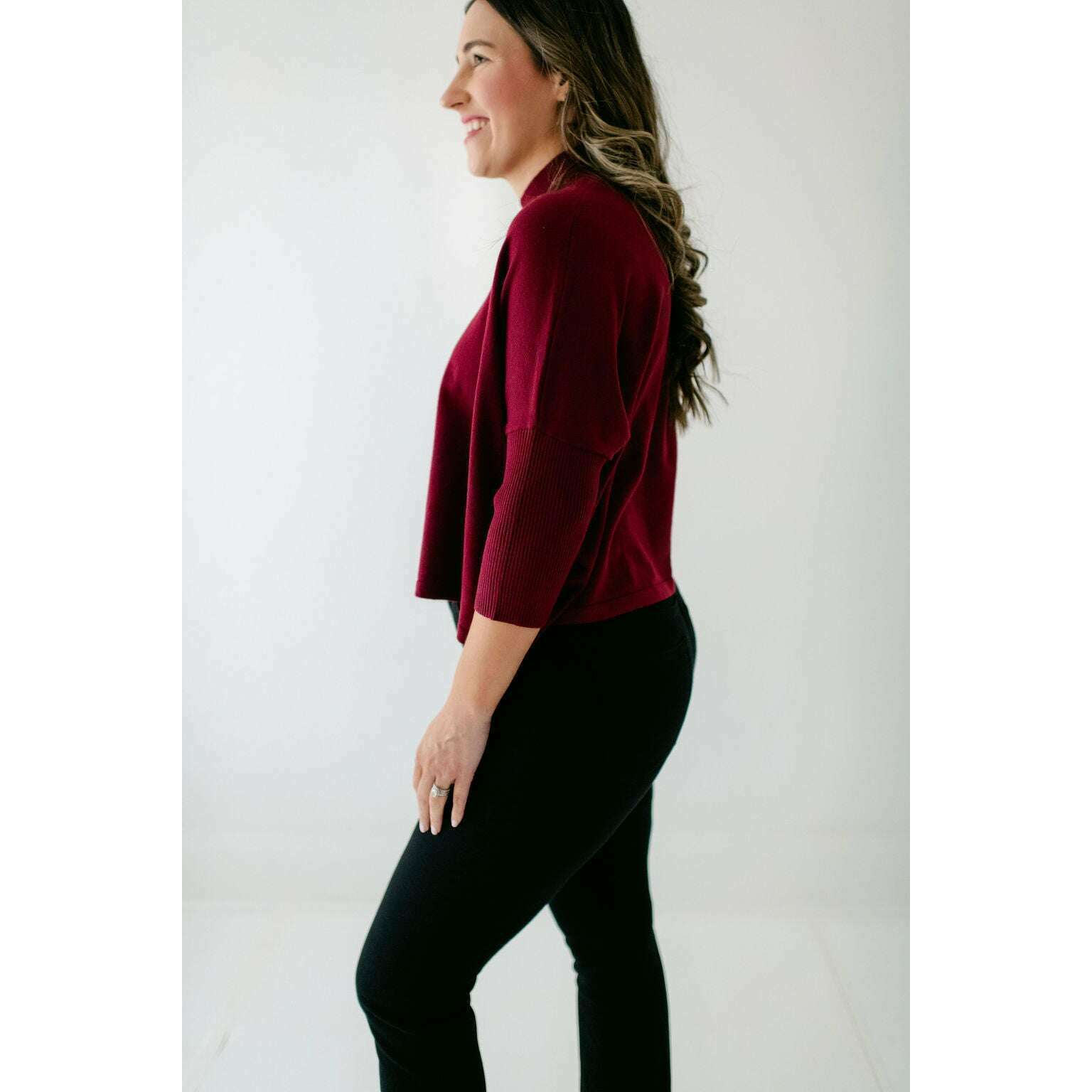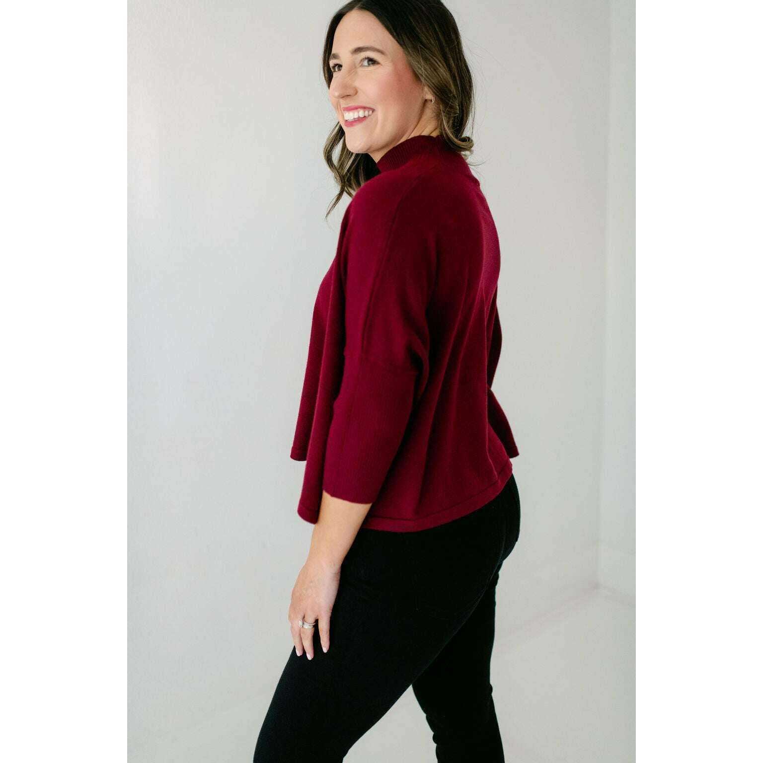 The Kerisma Knits Aja Ortho Solid Top in Bordeaux is back and better than ever. This new version is a thinner, lighter take on our most popular sweater, offering the perfect balance of comfort and style. You'll love how effortlessly it layers or stands alone, making it a must-have for the season.