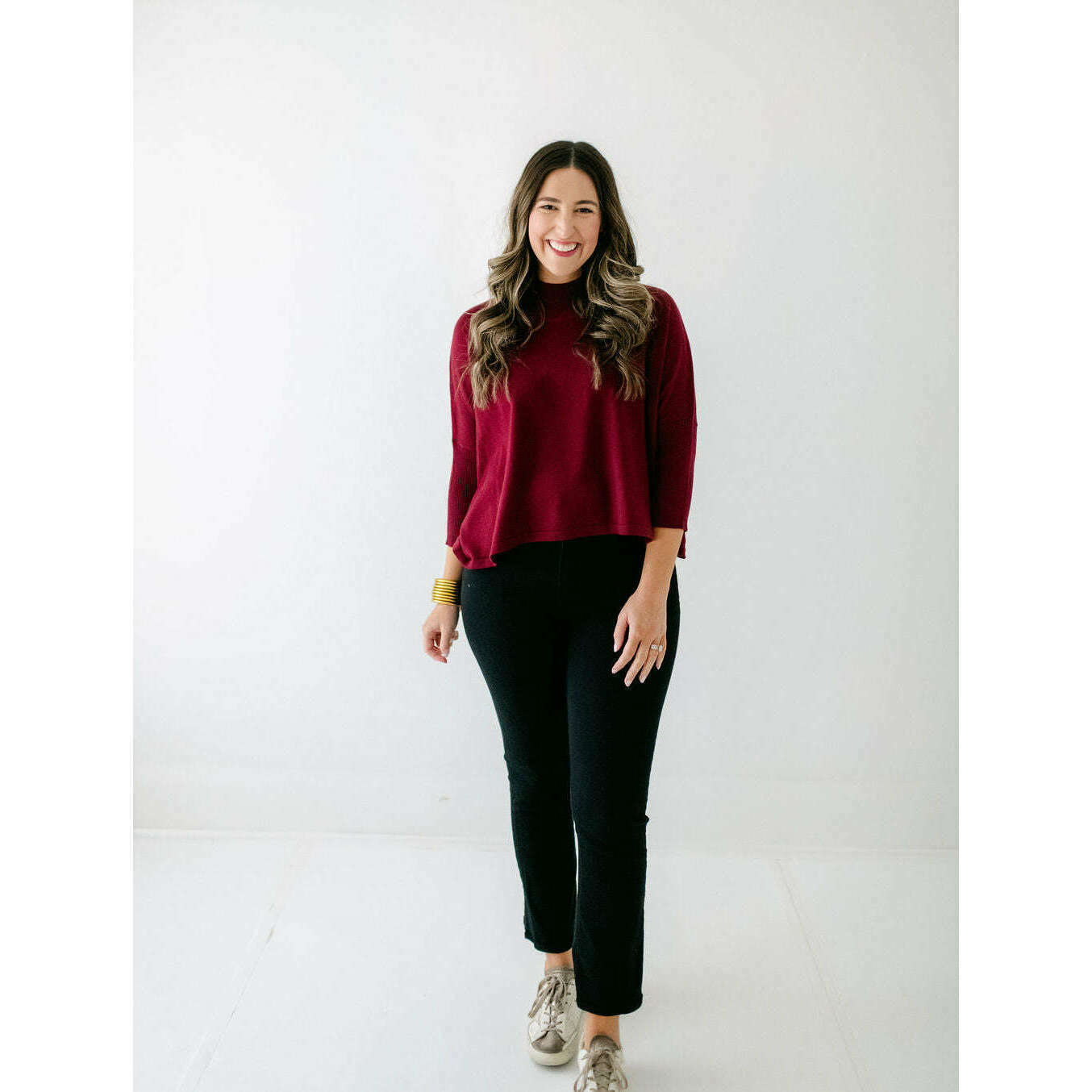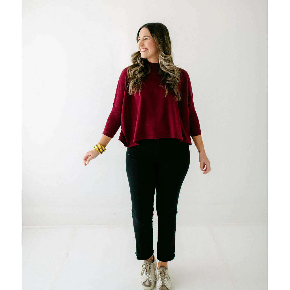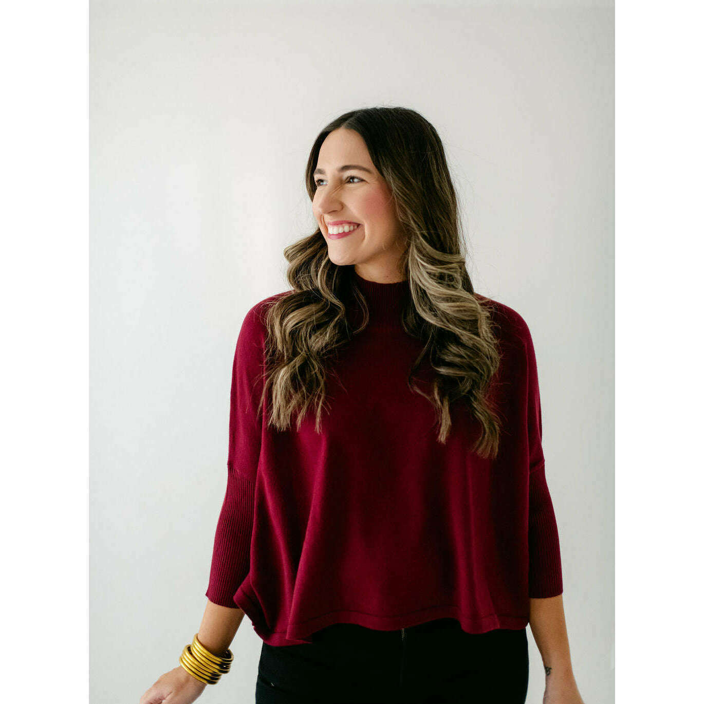 The Kerisma Knits Aja Ortho Solid Top in Bordeaux is back and better than ever. This new version is a thinner, lighter take on our most popular sweater, offering the perfect balance of comfort and style. You'll love how effortlessly it layers or stands alone, making it a must-have for the season.