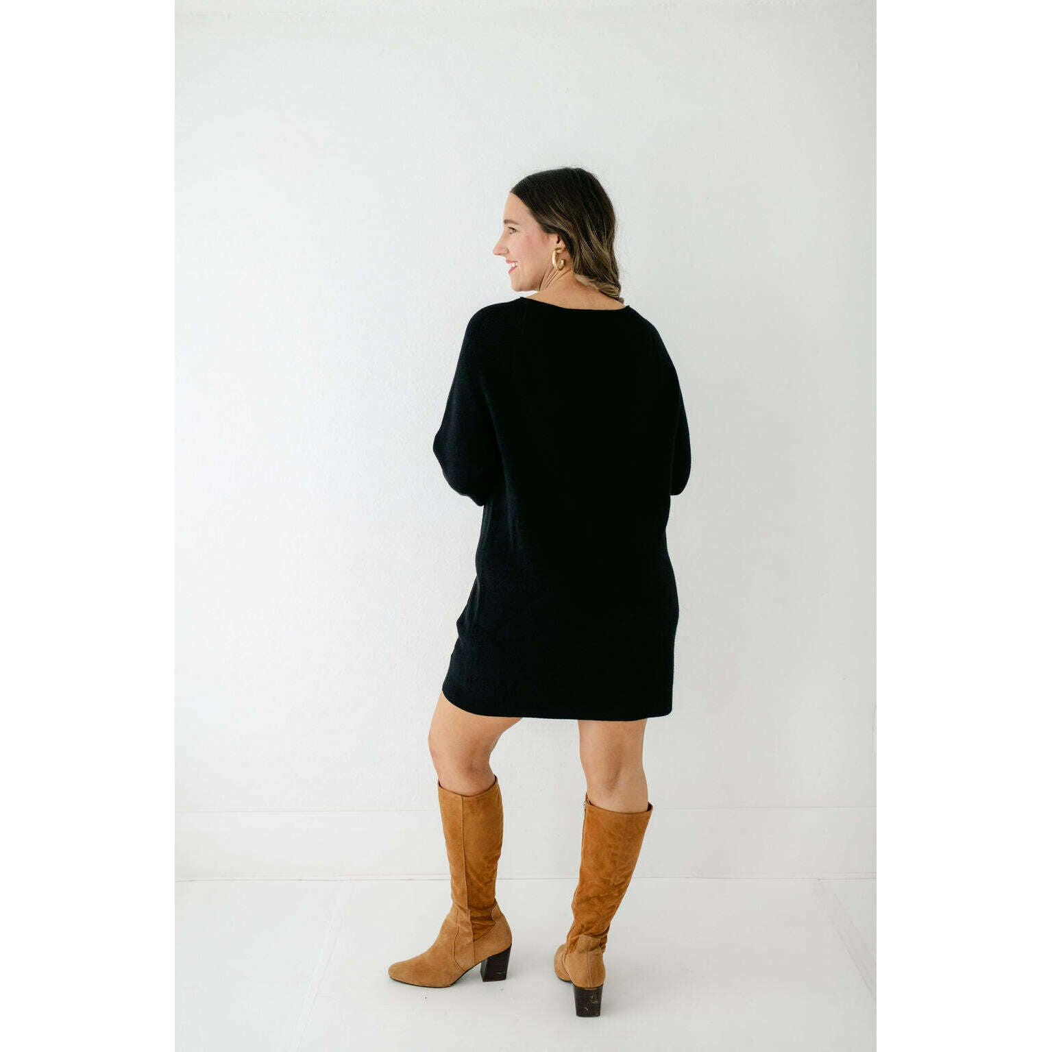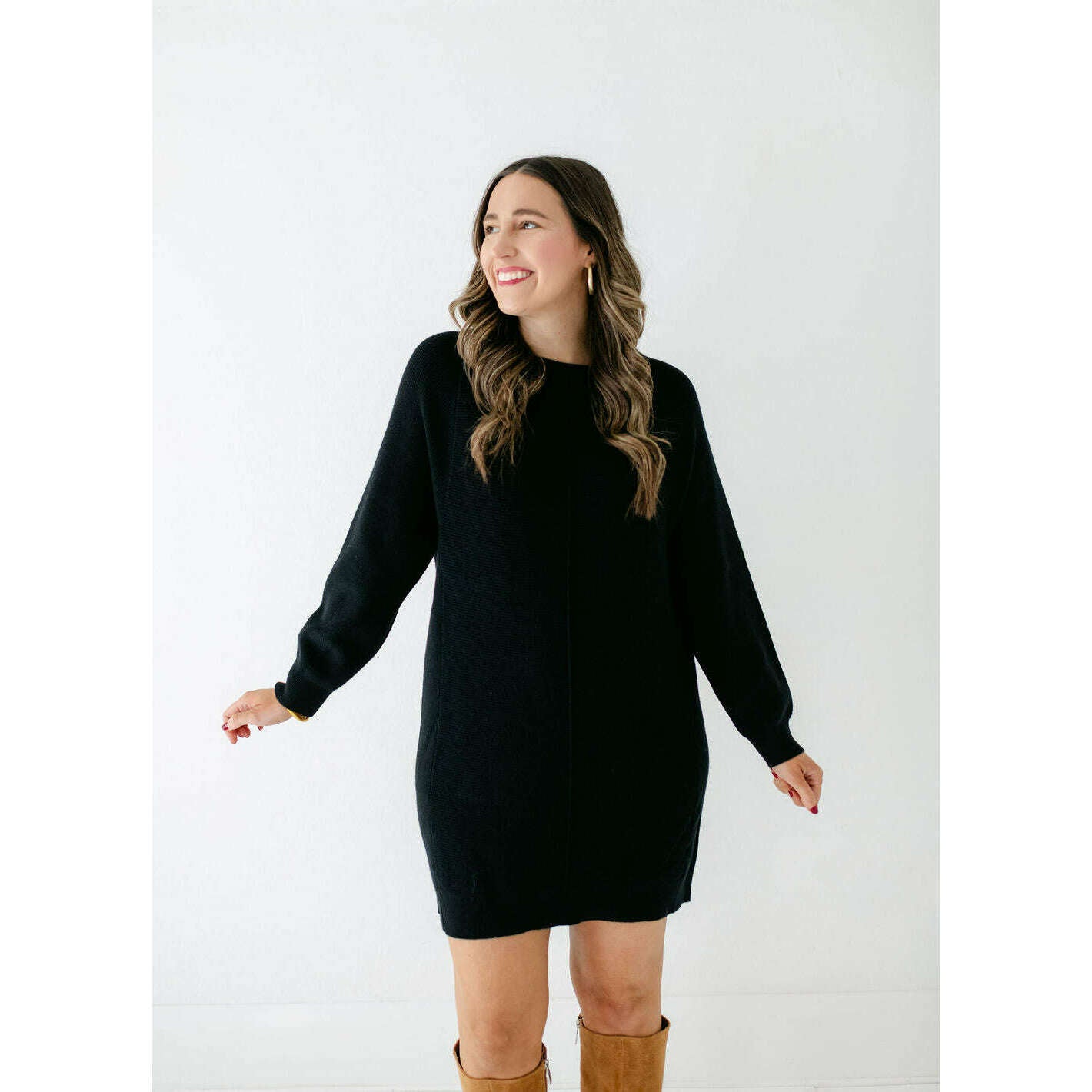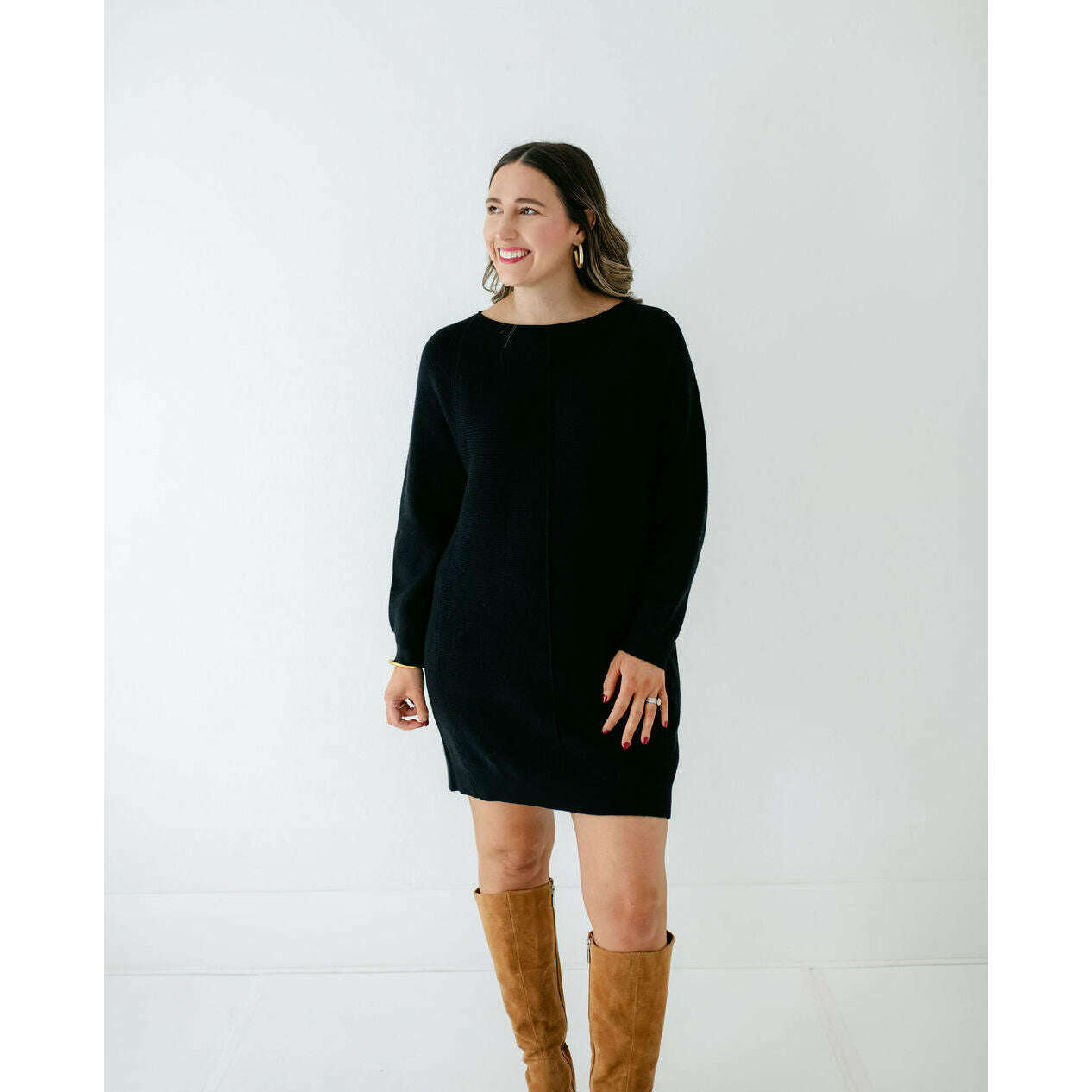 The Kerisma Knits Assima Sweater Dress in Black is your go-to layer for cozy fall days. Its soft knit fabric keeps you warm while the sleek black design adds a touch of effortless style. Perfect for dressing up or down, this sweater dress balances comfort and fashion, making it an essential piece for the season. Embrace fall with a look that's both fun and flattering.