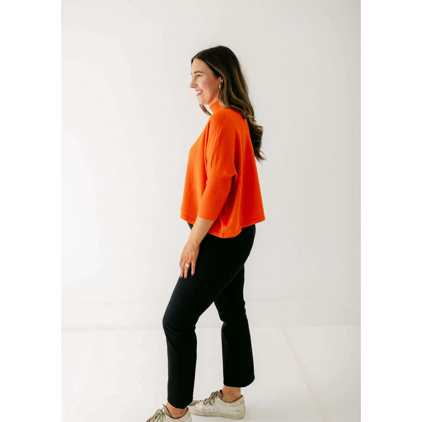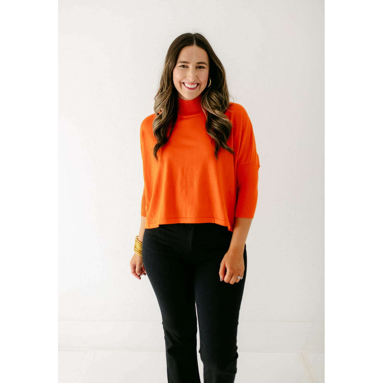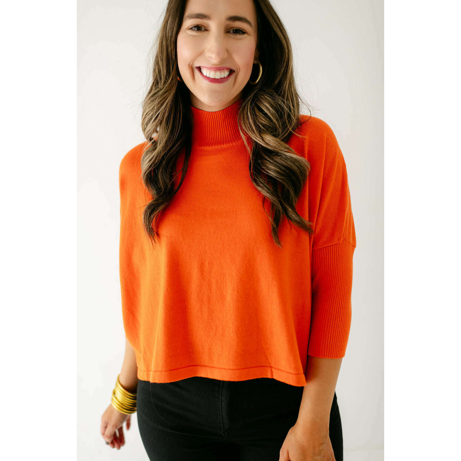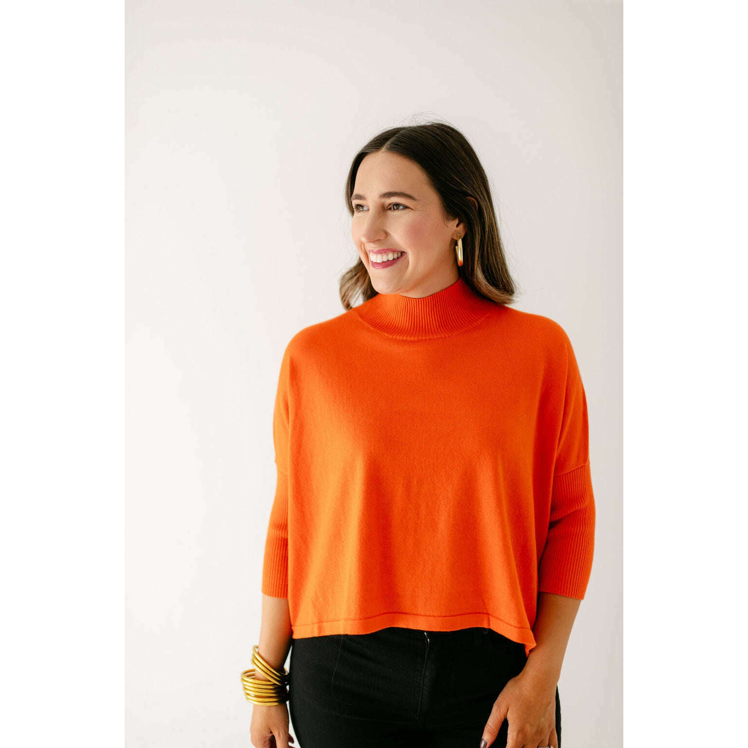 The Kerisma Knits Aja Ortho Solid Top in Orange is back and better than ever. This new version is a thinner, lighter take on our most popular sweater, offering the perfect balance of comfort and style. You'll love how effortlessly it layers or stands alone, making it a must-have for the season.