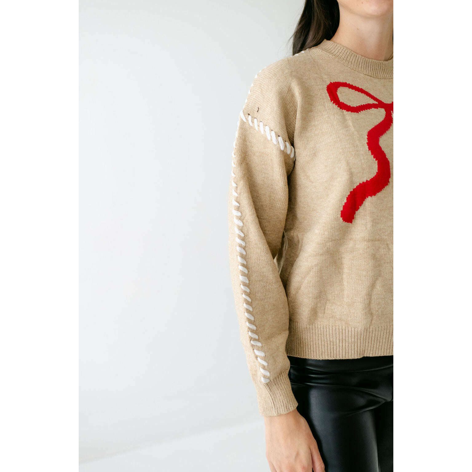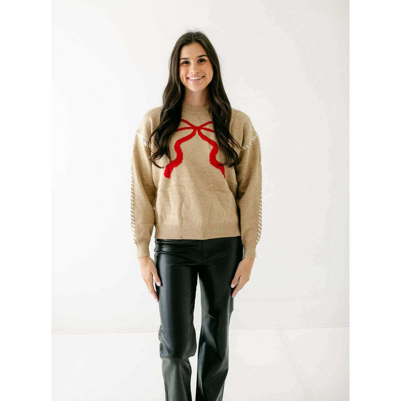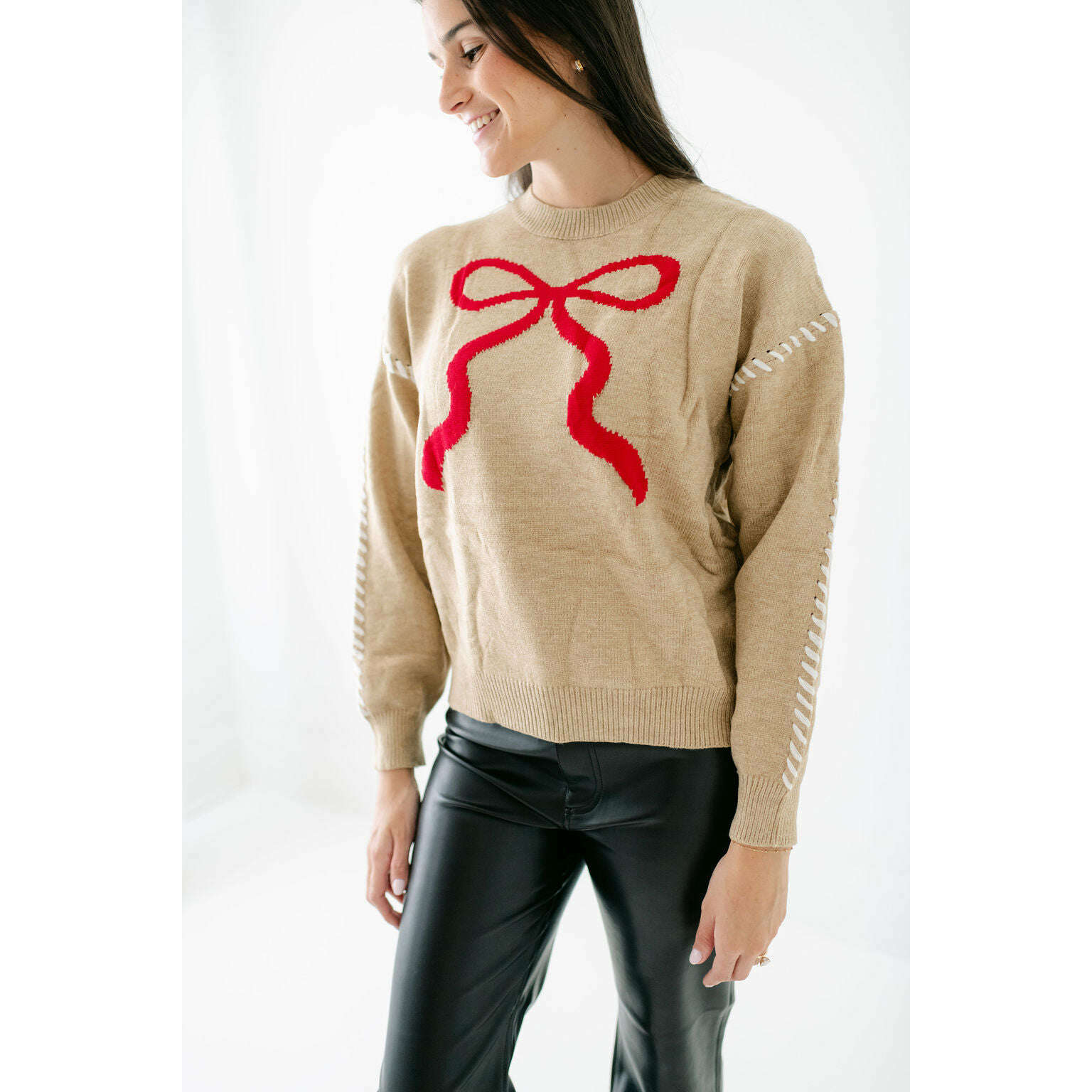 Elevate your holiday style with The Mia Red Bow Taupe Sweater, a charming piece that brings festive flair to every occasion. The striking red bow detail against the warm taupe base creates an eye-catching look that's both playful and sophisticated, making it the perfect statement piece for seasonal celebrations.