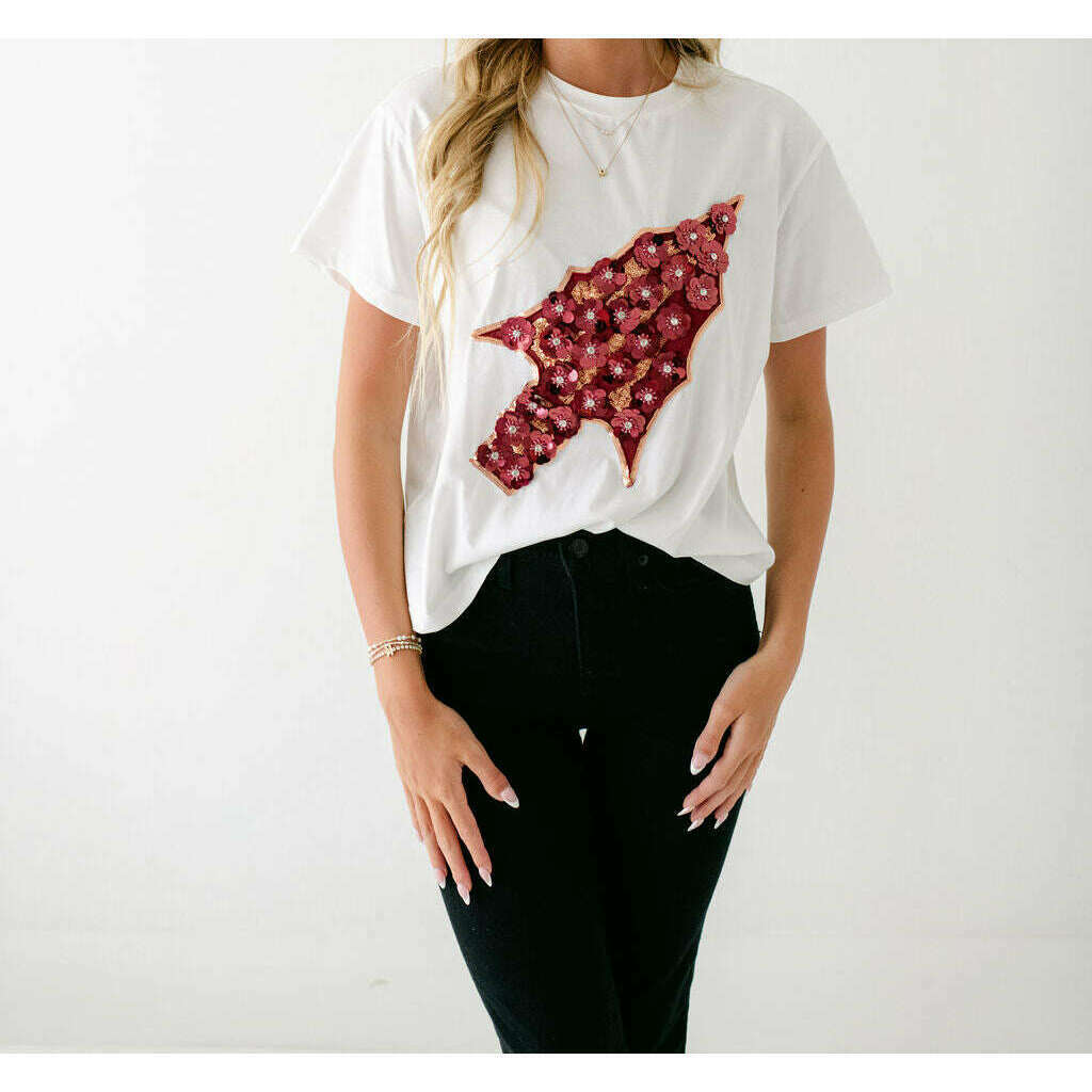 Queen of Sparkles FSU Arrowhead Sequin Flower Tee