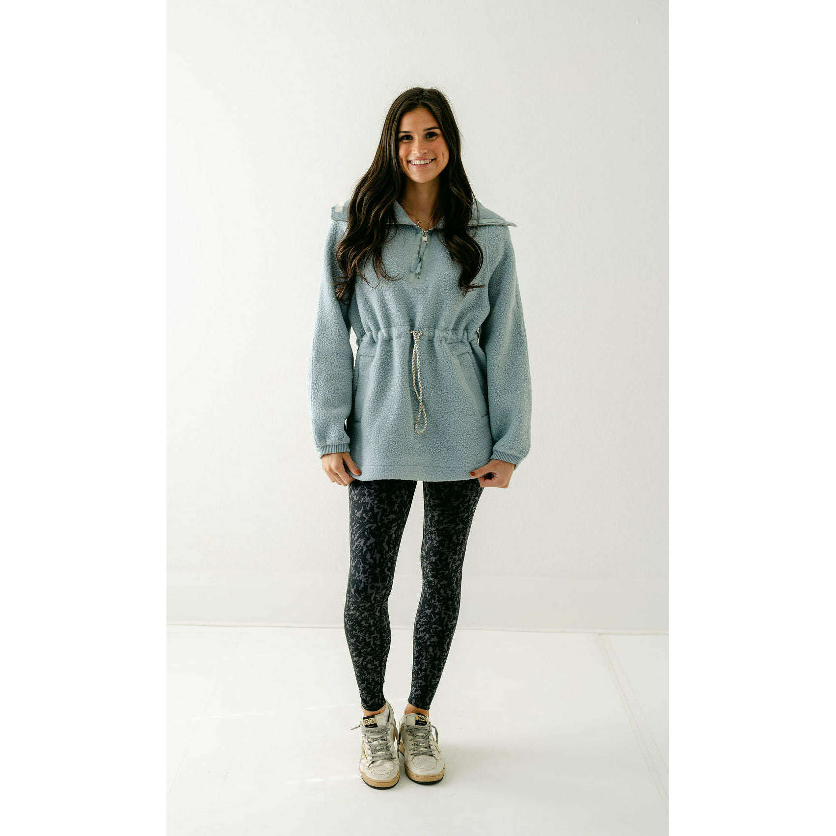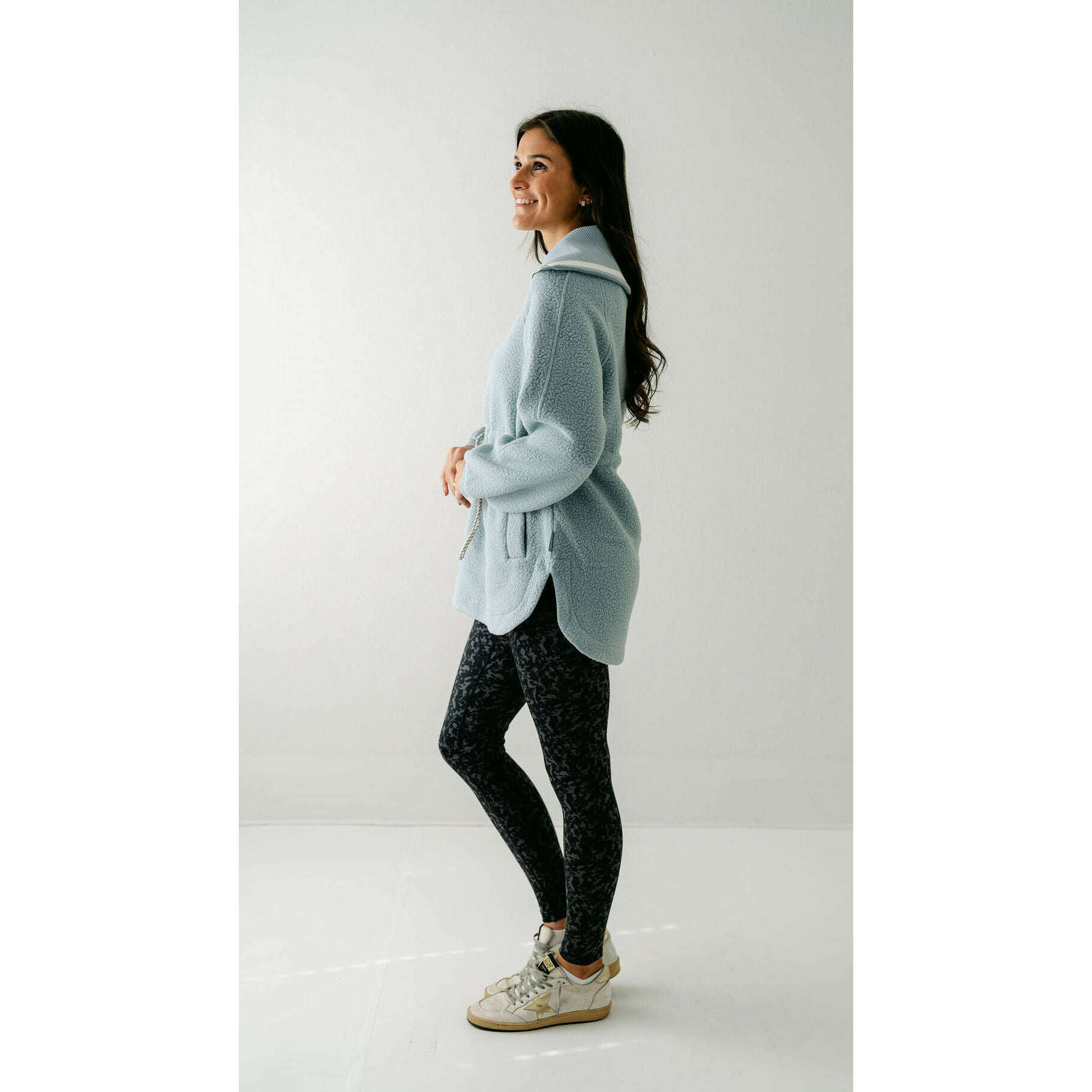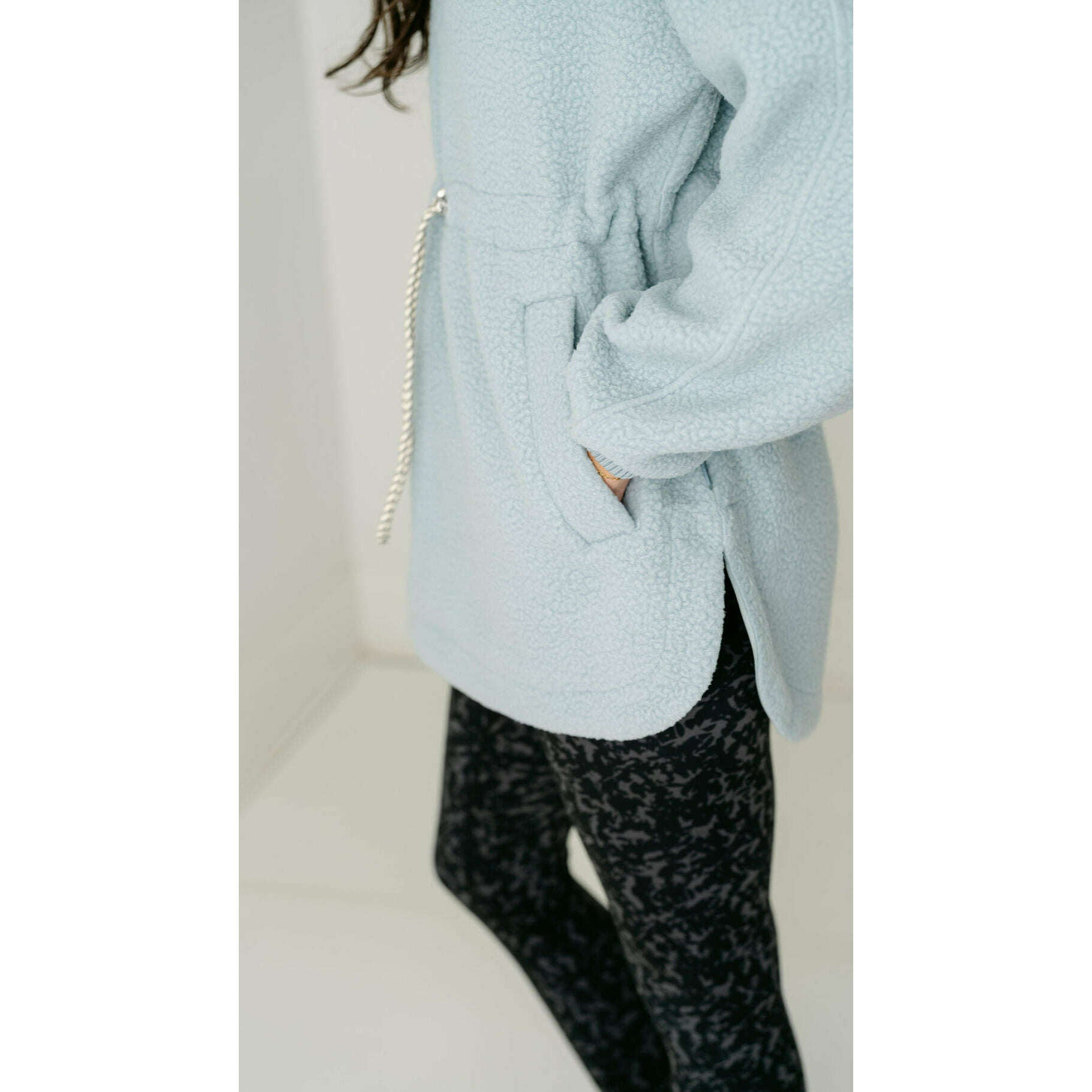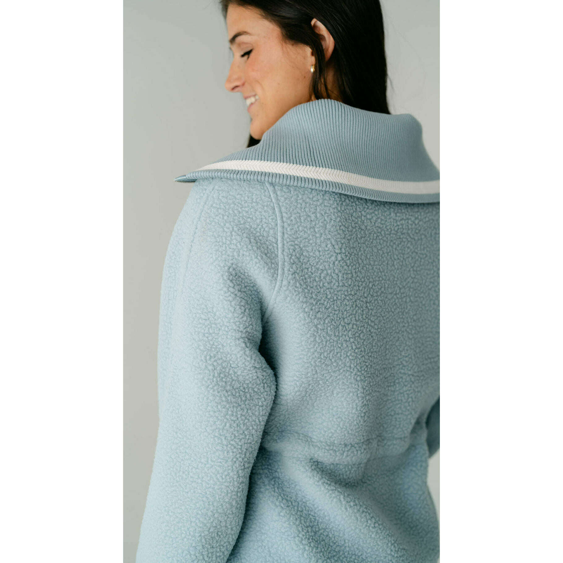 The Varley Ashby is a longline half-zip made from our warm and insulating Plush Borg Fleece and refined with stripe detailing along the collar. It's cut to an oversized fit with an adjustable toggle waist that can be cinched in - perfect for layering over leggings, baselayers, and pants alike.