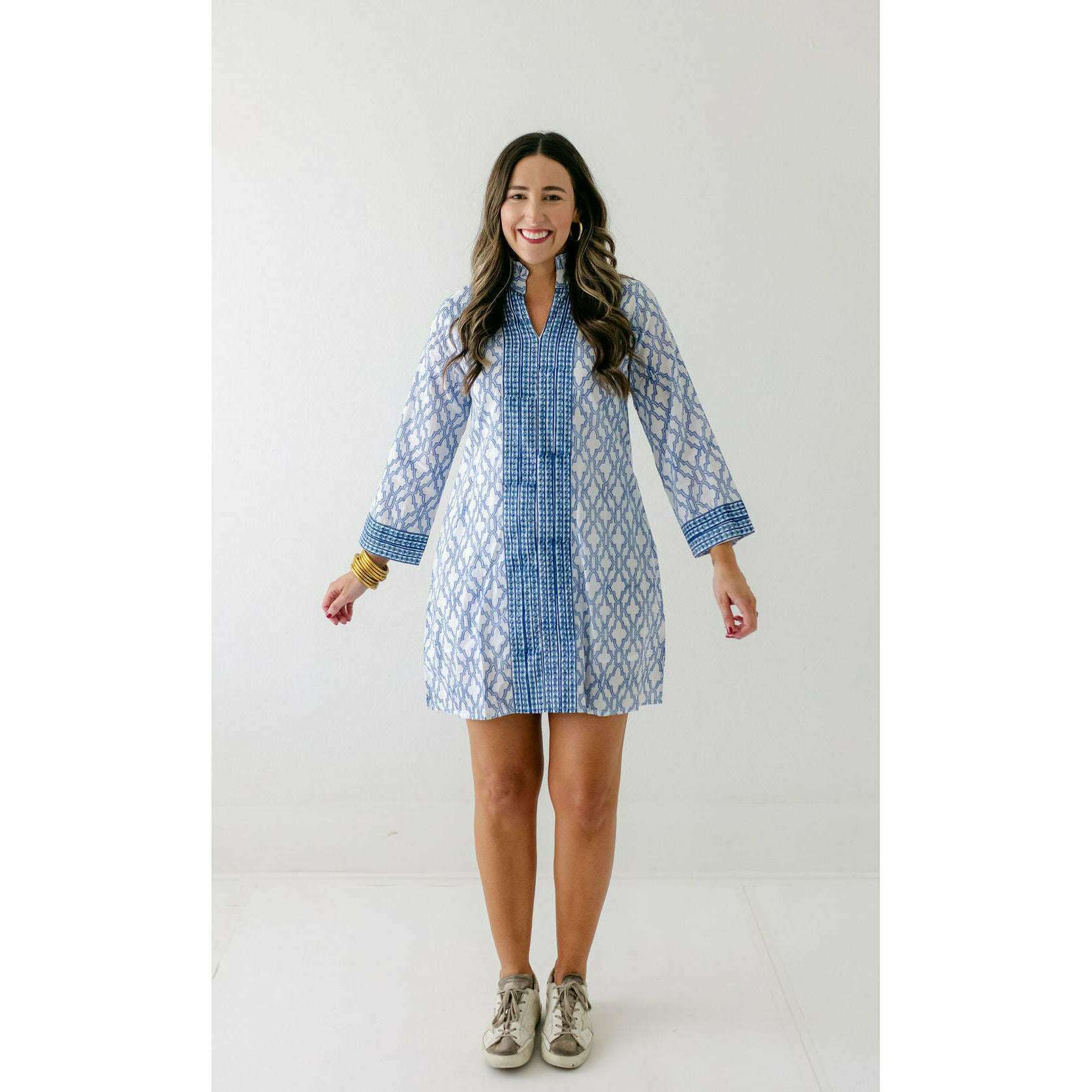 Ease into fall with the Victoria Dunn French Quarters Dress in Royal Trellis. Featuring a captivating print, this dress combines effortless style with seasonal comfort. Its elegant design makes it perfect for transitioning your wardrobe and turning heads wherever you go. Embrace the season with a piece that celebrates both beauty and ease.
