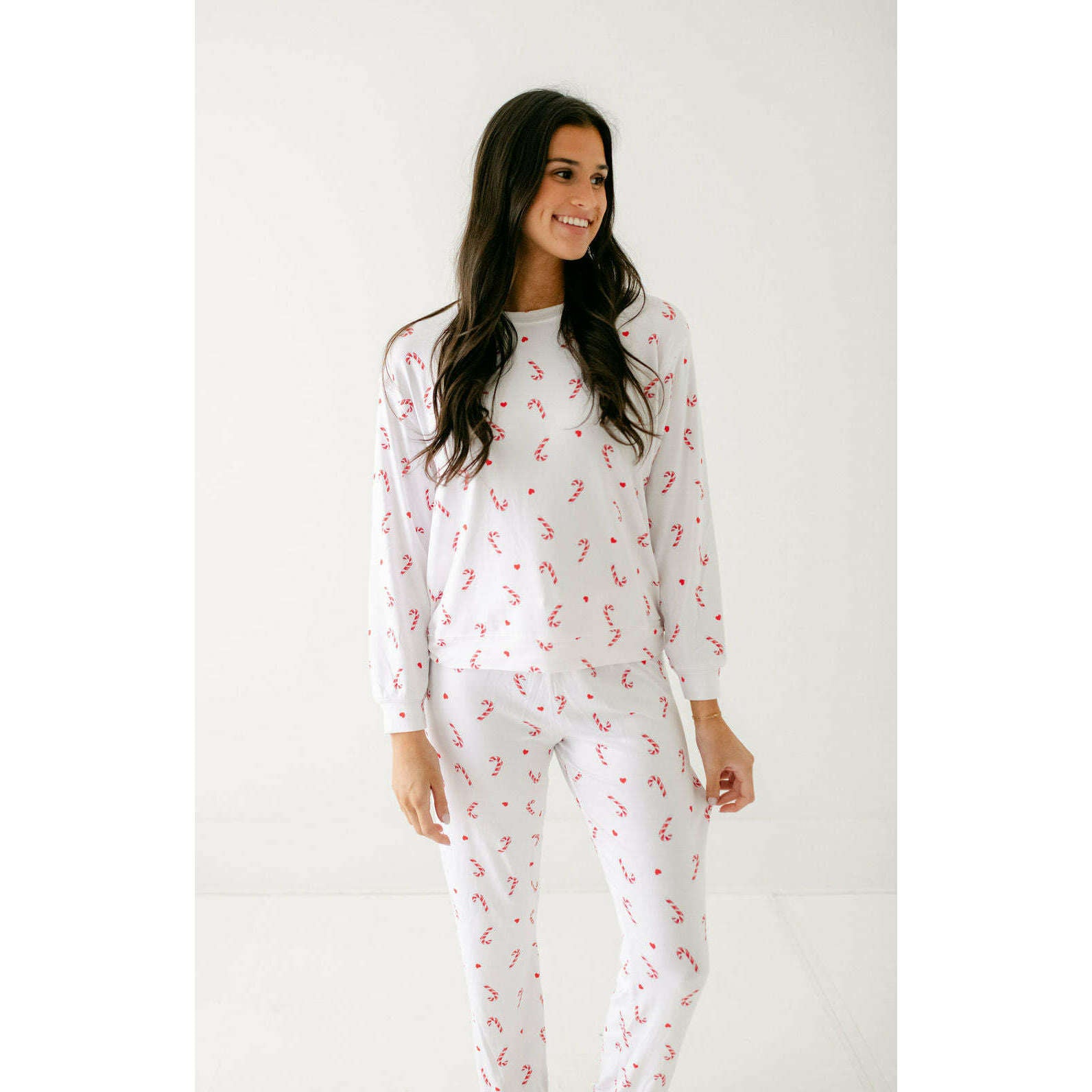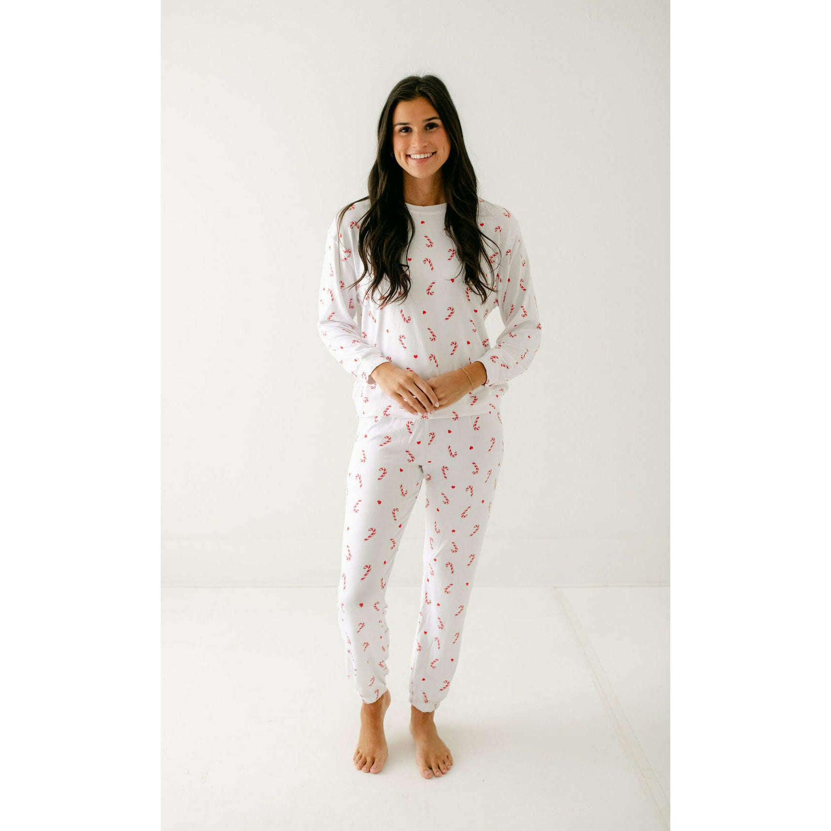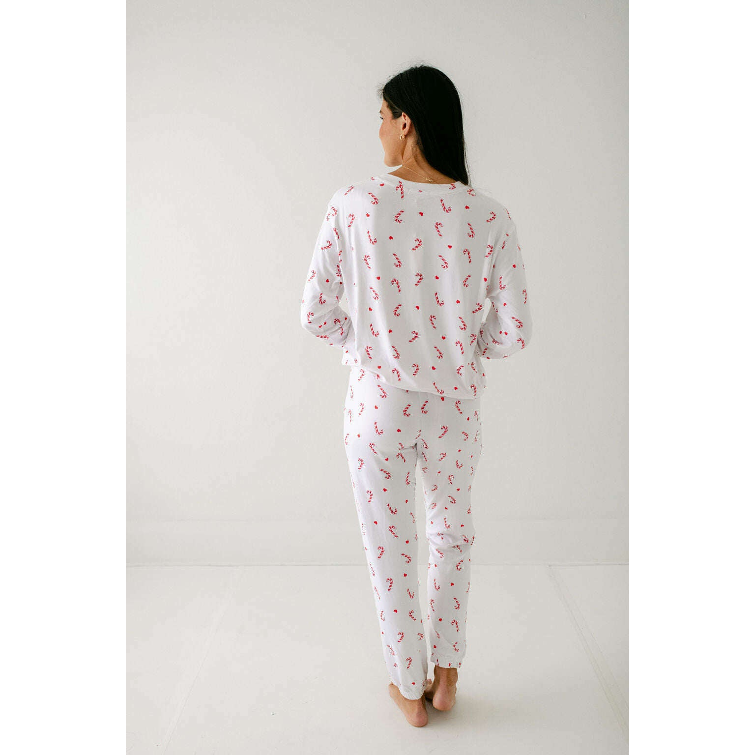 Sweet and seasonal, this relaxed set is crafted in silky jersey with a playful candy cane print. With a classic crew neck top and high-rise jogger, it’s the kind of festive cozy she’ll want all winter long.
