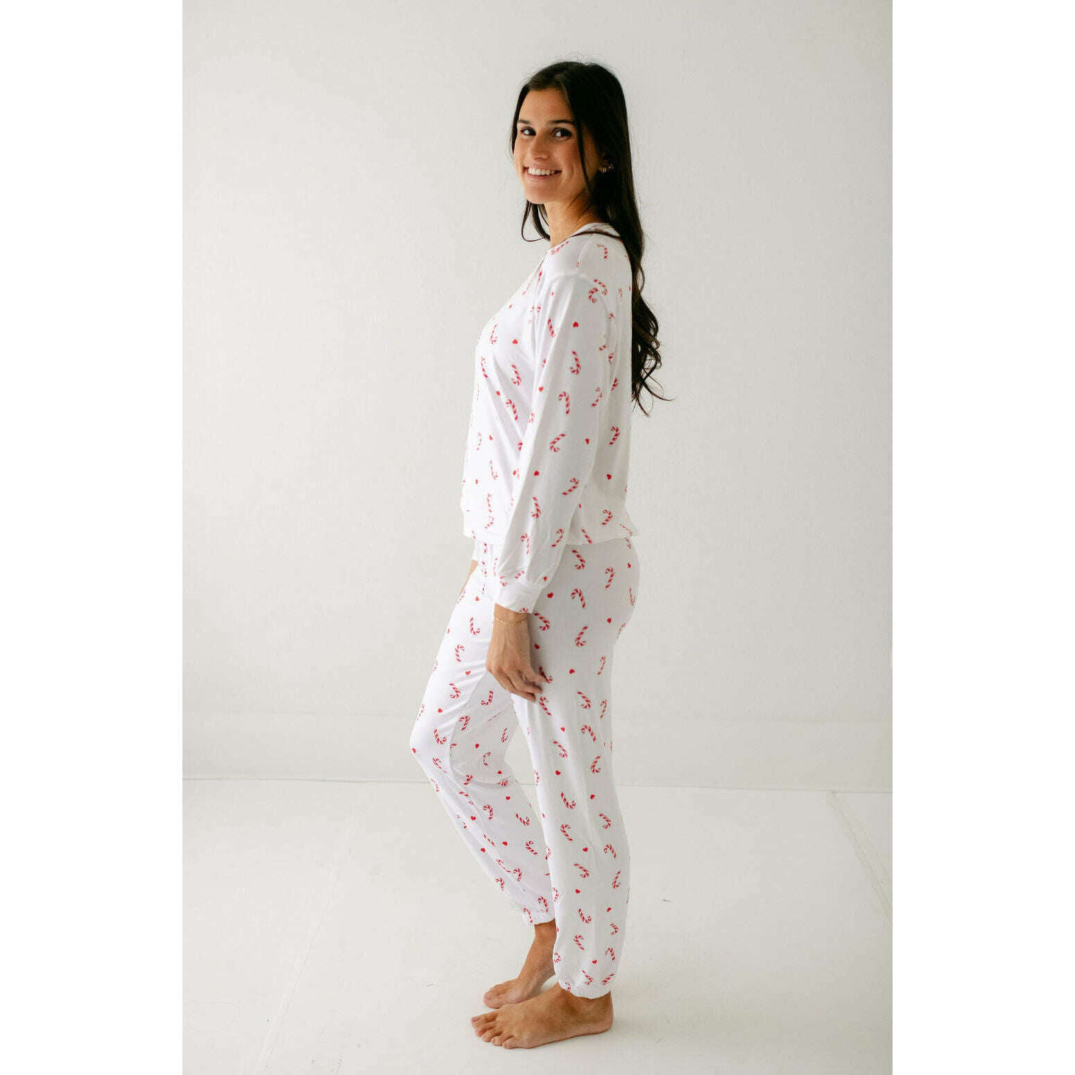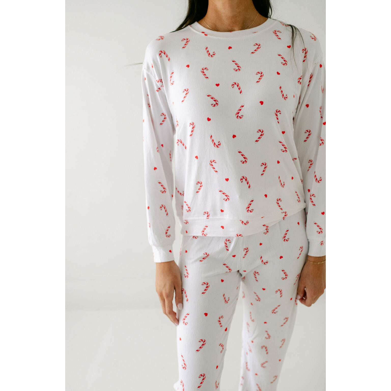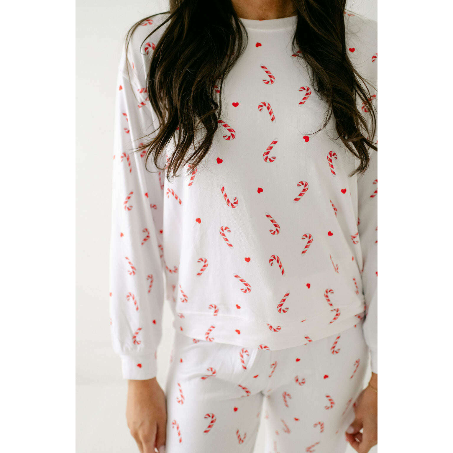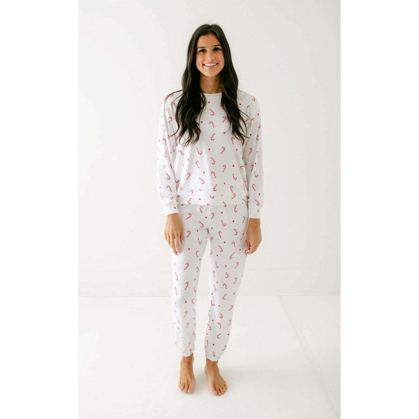 Sweet and seasonal, this relaxed set is crafted in silky jersey with a playful candy cane print. With a classic crew neck top and high-rise jogger, it’s the kind of festive cozy she’ll want all winter long.