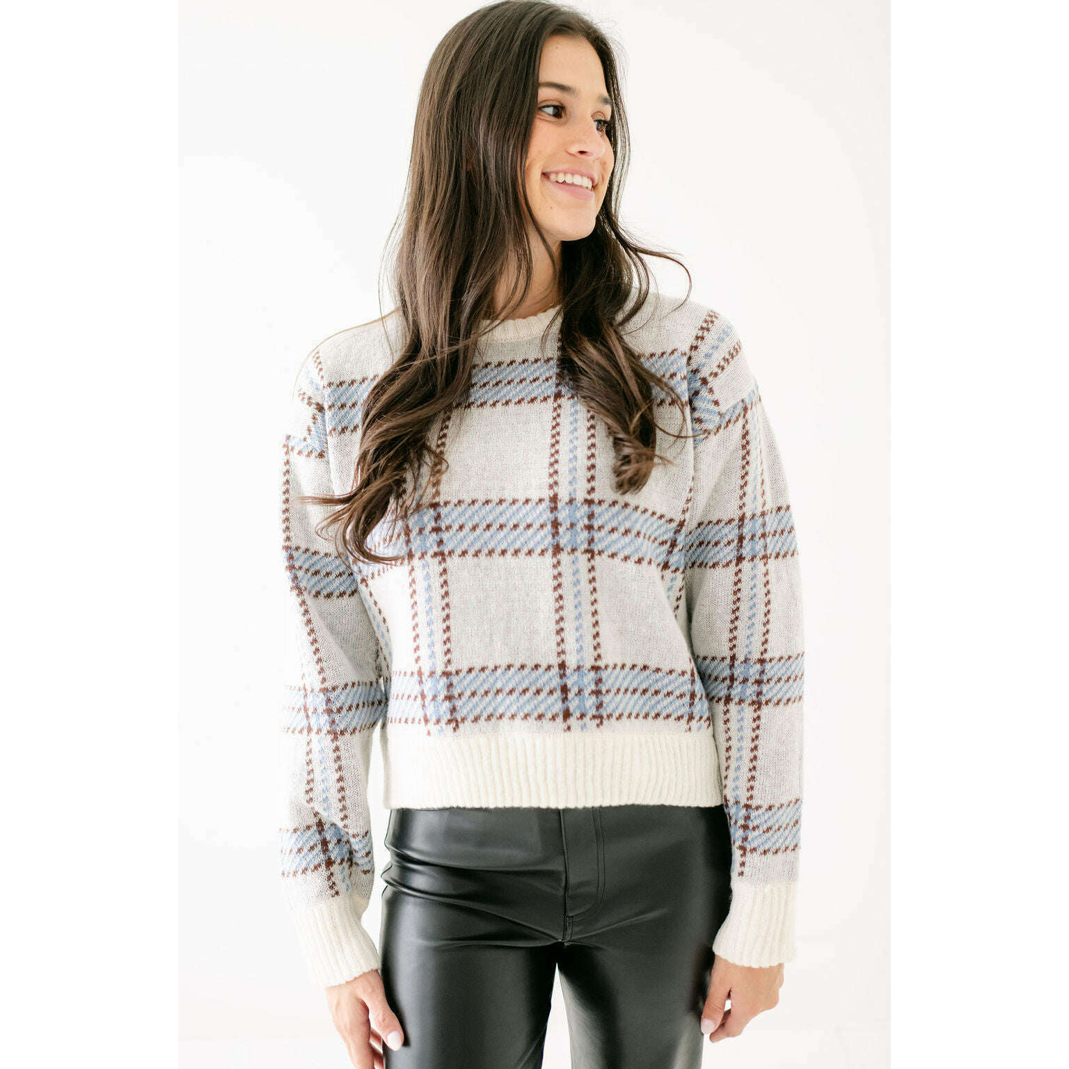 A fresh take on plaid. This isn’t your average check sweater; it’s crafted in airy, textured yarns that feel plush yet breathable. The relaxed shape and elevated pattern make it the one piece that instantly pulls your look together.