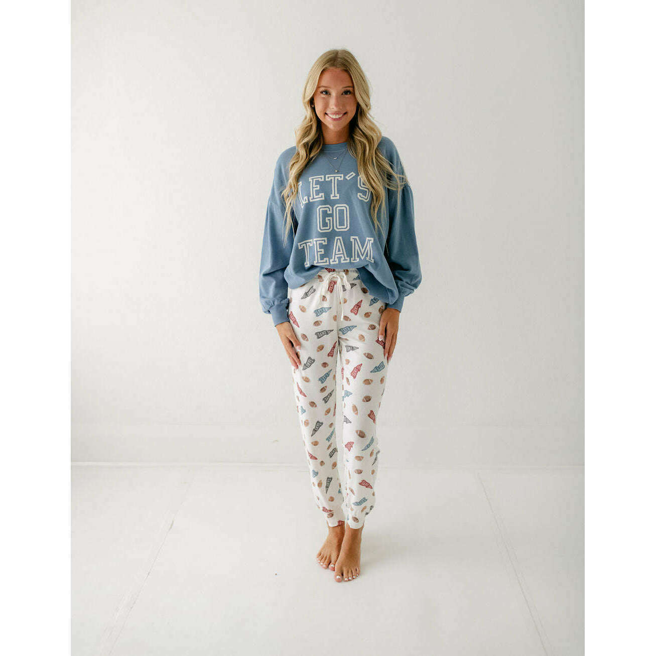Experience ultimate comfort and style with the Z-Supply Let's Go Jogger in Vanilla Ice. Perfect for a cozy game day, these joggers offer a relaxed fit and soft fabric that keep you comfortable all day long. Pair them with our Go Team sweatshirt for a fun and complete look that shows off your team spirit in effortless style.