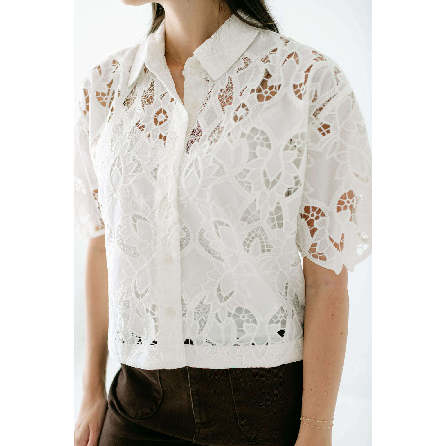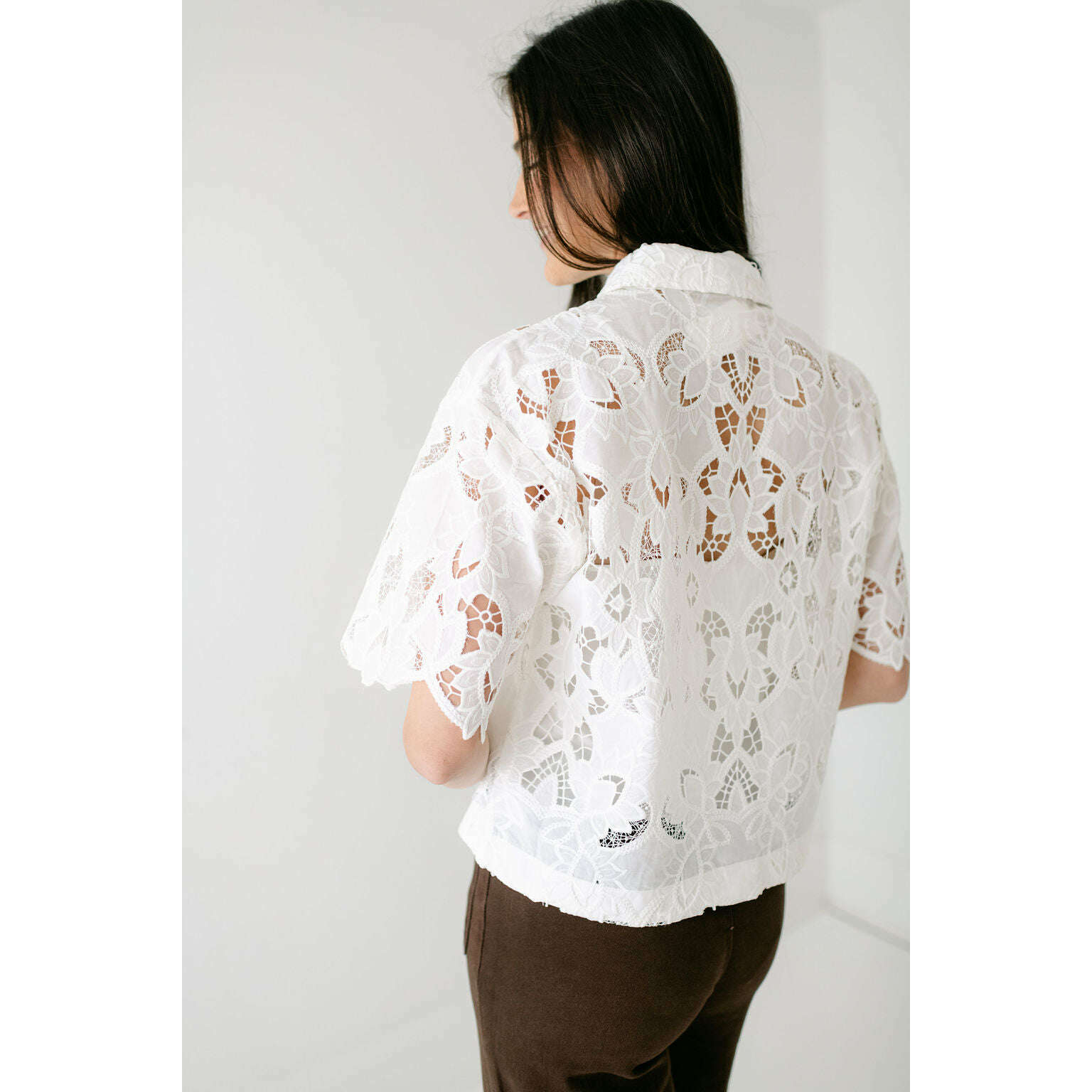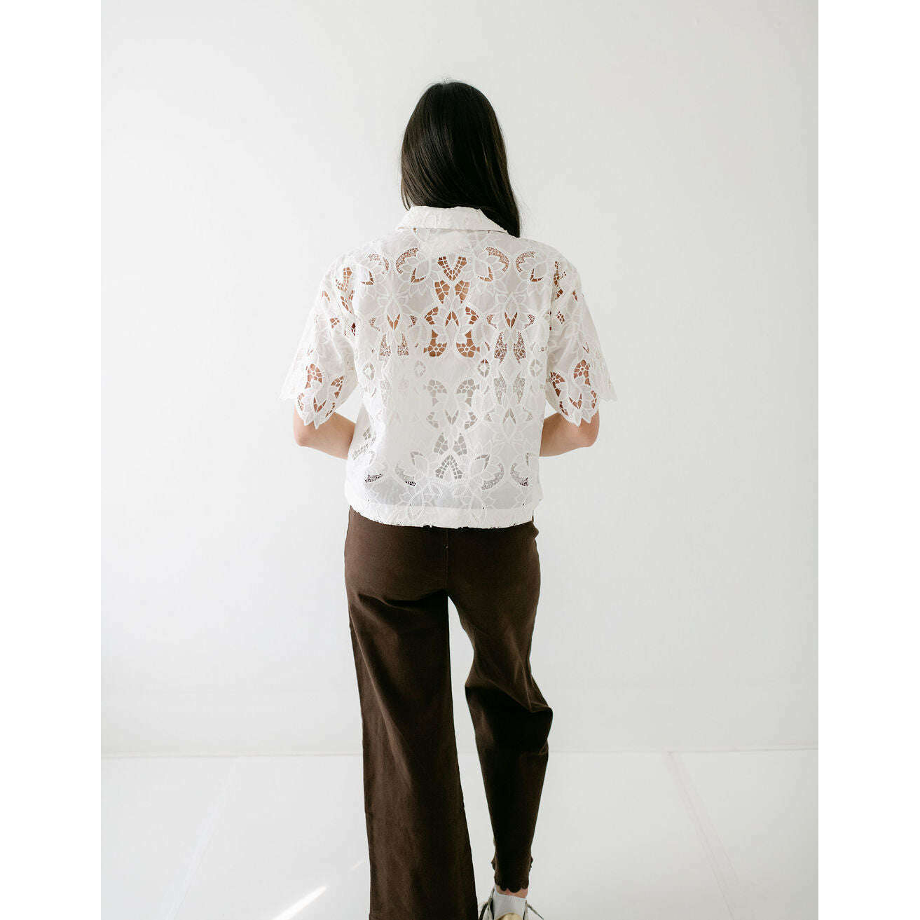 Intricate embroidery and an airy feel make this button-up an easy way to dress up your look. Delicate embroidery meets breezy cotton crepe in this short-sleeve button-up. The collared silhouette and airy fabric make it a polished yet easy layer for day-to-night styling.