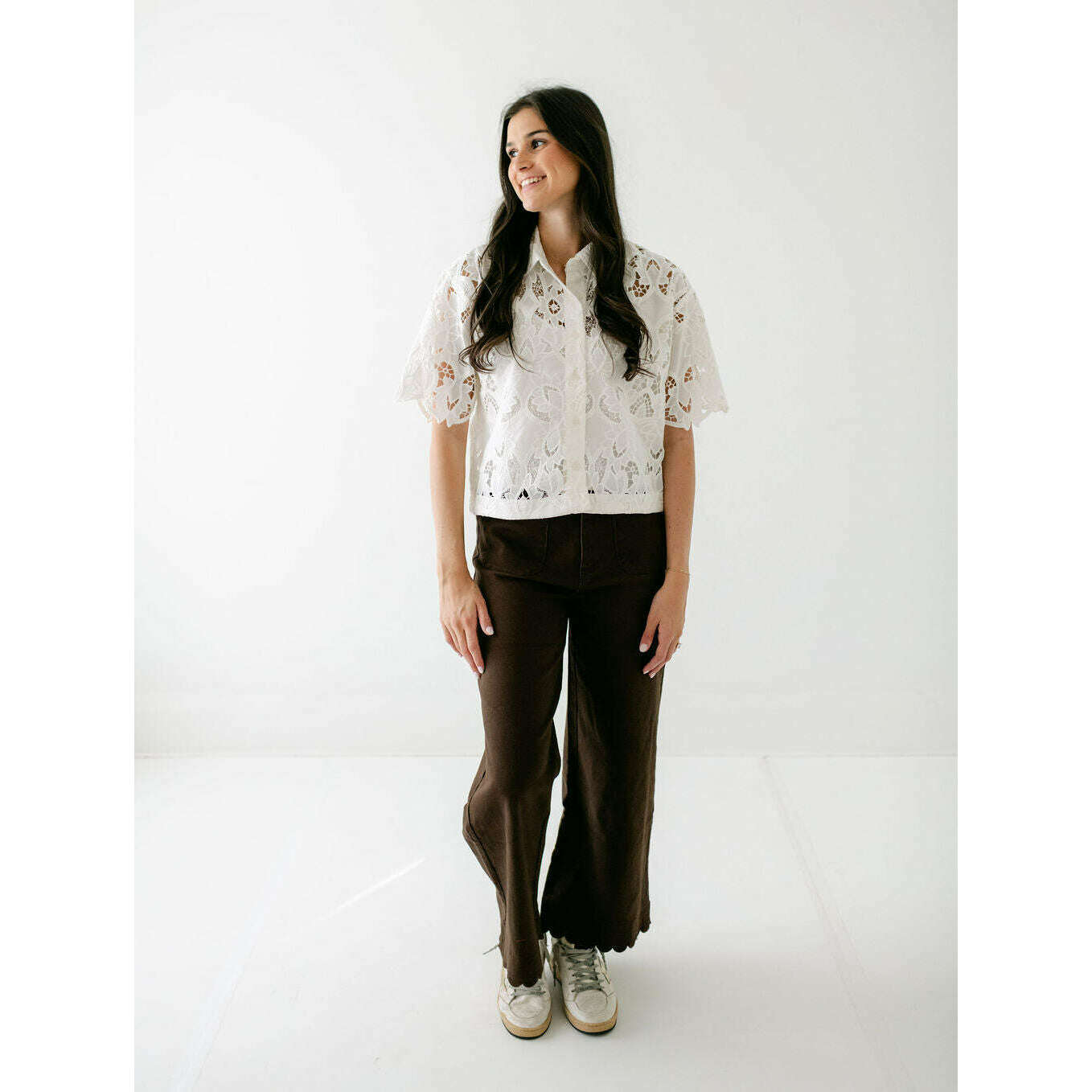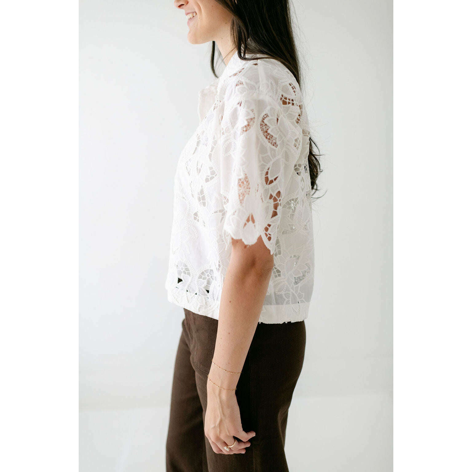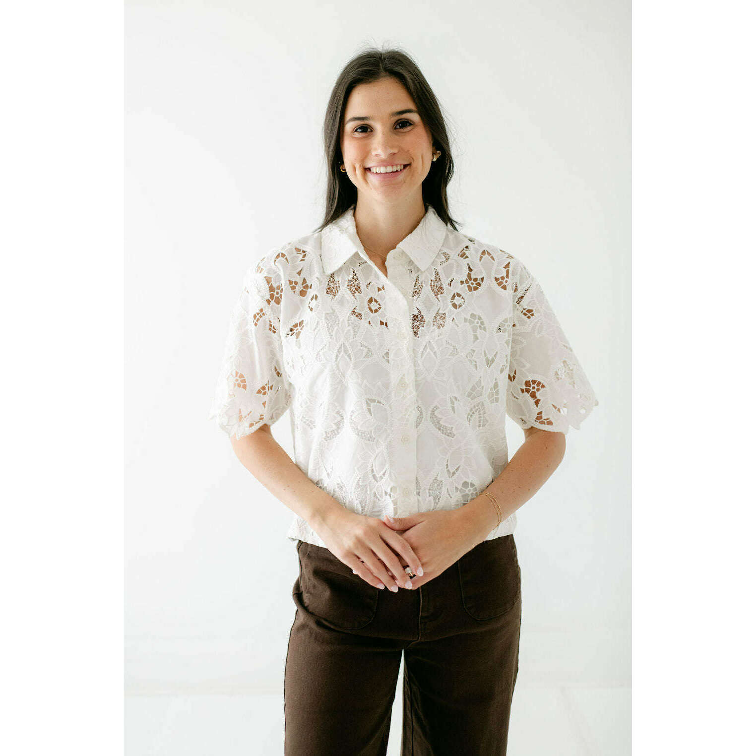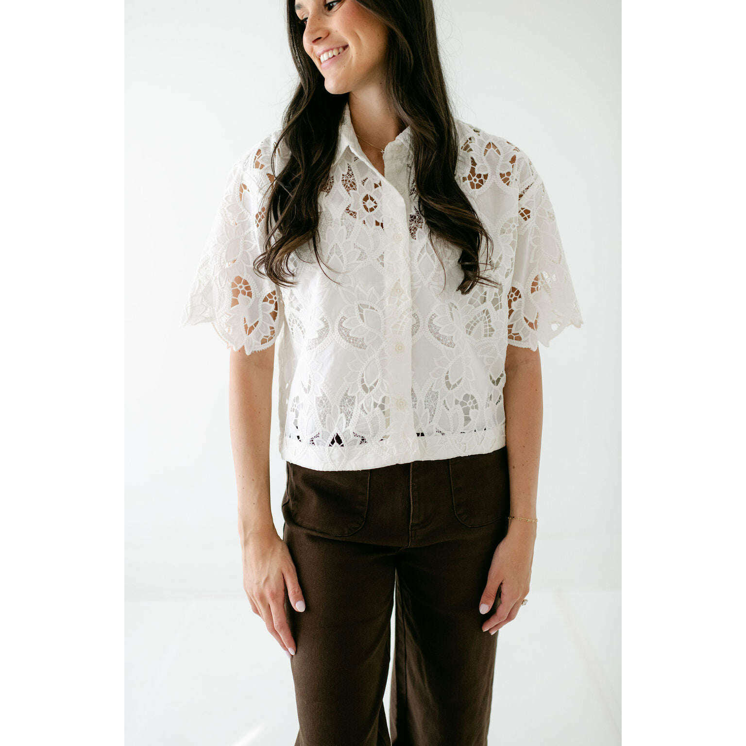 Intricate embroidery and an airy feel make this button-up an easy way to dress up your look. Delicate embroidery meets breezy cotton crepe in this short-sleeve button-up. The collared silhouette and airy fabric make it a polished yet easy layer for day-to-night styling.