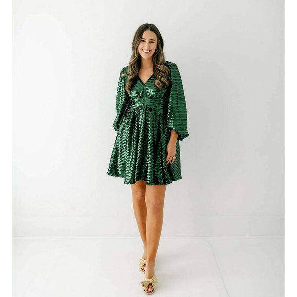 Twist and twirl all night long in our Alden Adair Cher Dress, offering a v neckline, balloon sleeves and a flare skirt. Fabric: 100% Polyester Machine wash cold Fits true to size, Caroline is wearing a size small. She is...