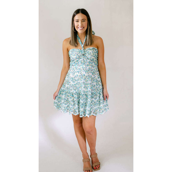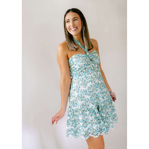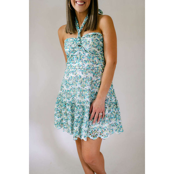 How fun is our Allison Sky Halter Eyelet dress?! This is one of our favorite dresses for summer! We love the eyelet detailing, the halter top and the tassels on the ties. This dress is just begging to be worn...