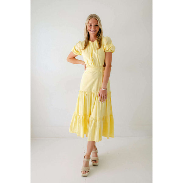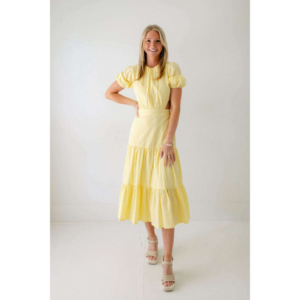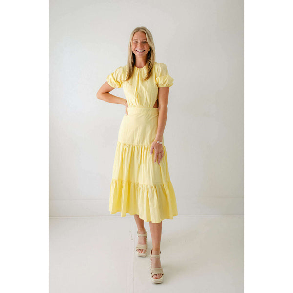 Get ready to turn heads this summer with the Bishop + Young Nadia Cut Out Poplin Dress! This adorable dress features a vibrant yellow color and playful cut outs that are sure to make a statement. Perfect for any summer...