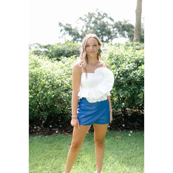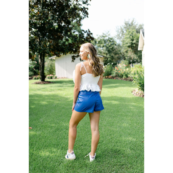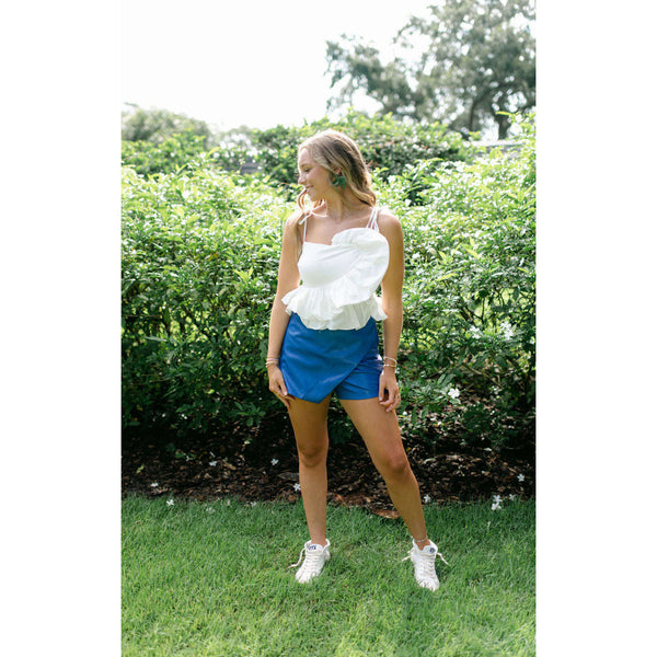 How fun is our Buddy Love John Royal Blue skort?! This is such a cute one for game day. We love it paired with our Beck White top for a full look this fall! Fits true to size, Morgan is...