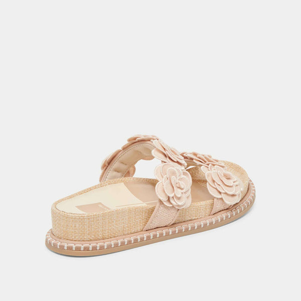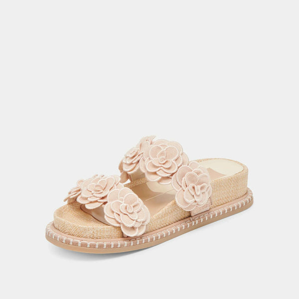 Dolce Vita Sherla's floral straps and soft footbed are like walking through a meadow. This sustainably-crafted sandal features a blanket stitch at the sole and comes in soft shades or white and praline. Woven Raffia + Synthetic Upper Recycled Synthetic...