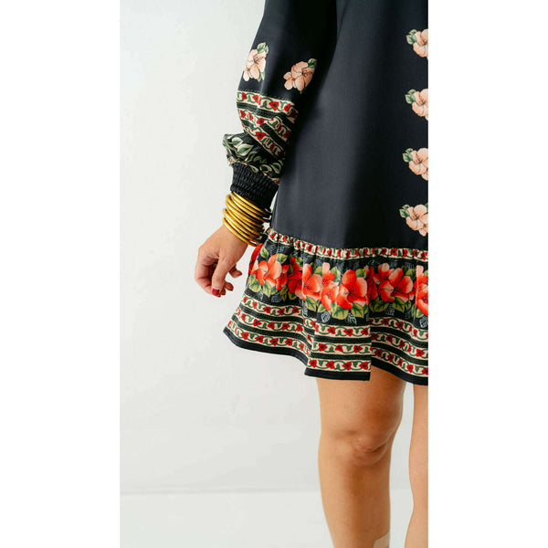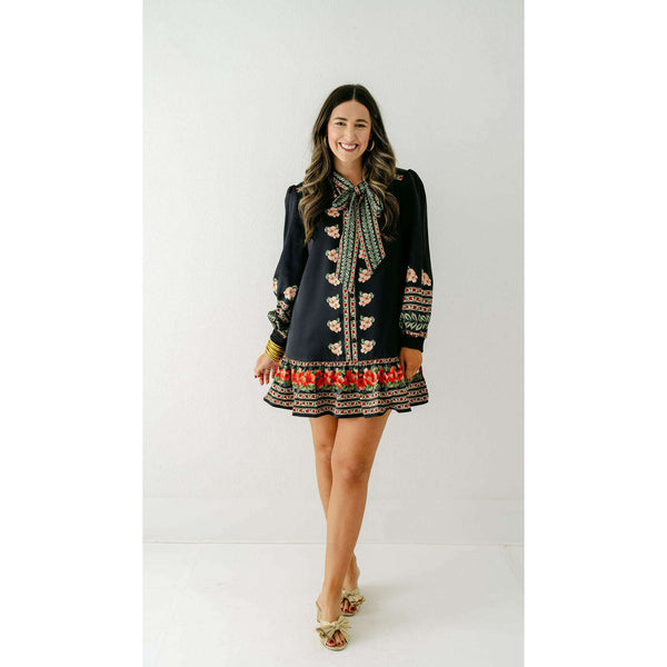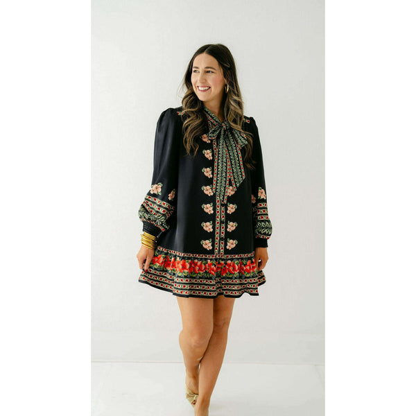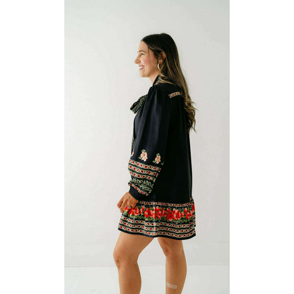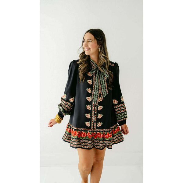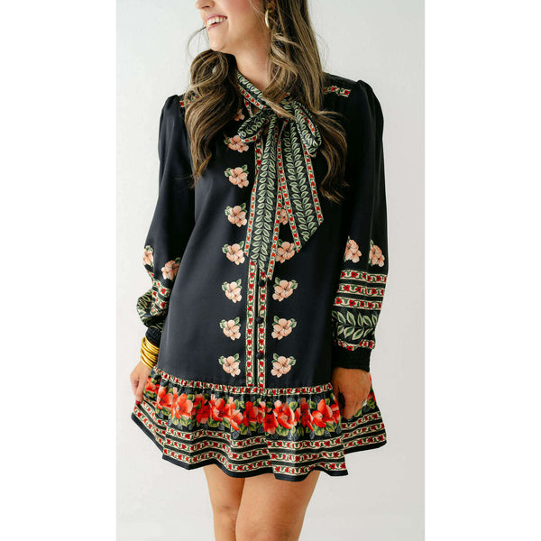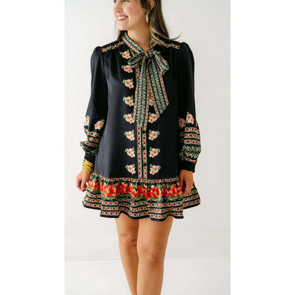 Our darling, feminine Elizabeth James Brit Bow blouse just got even better! We added a ruffle hem skirt, turning this vintage 80's inspired silhouette into the cutest Holiday mini dress. Pair with some black tights and heels for an easy,...