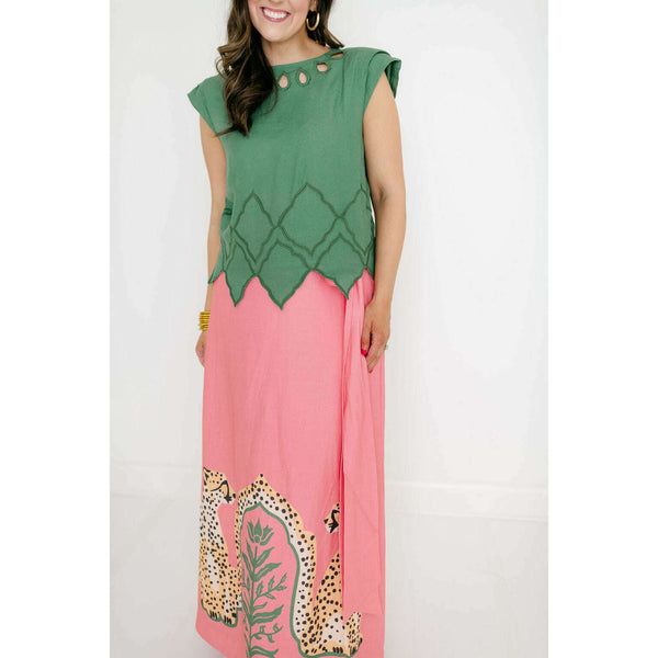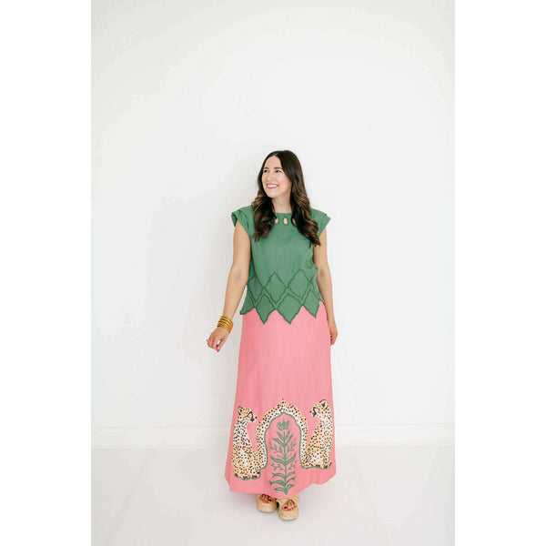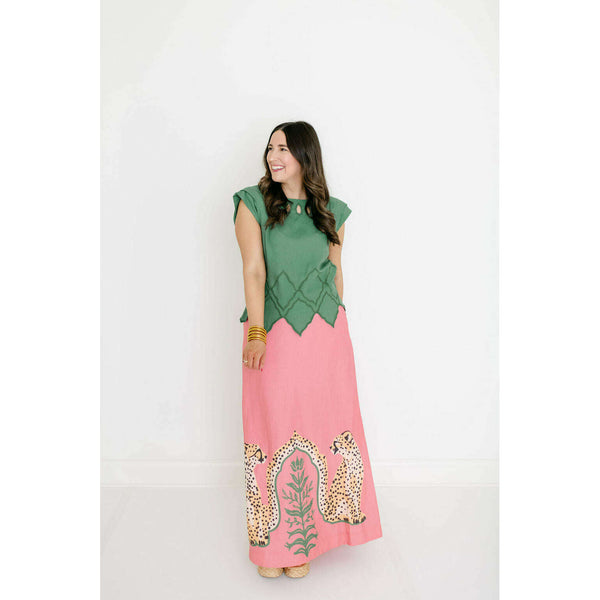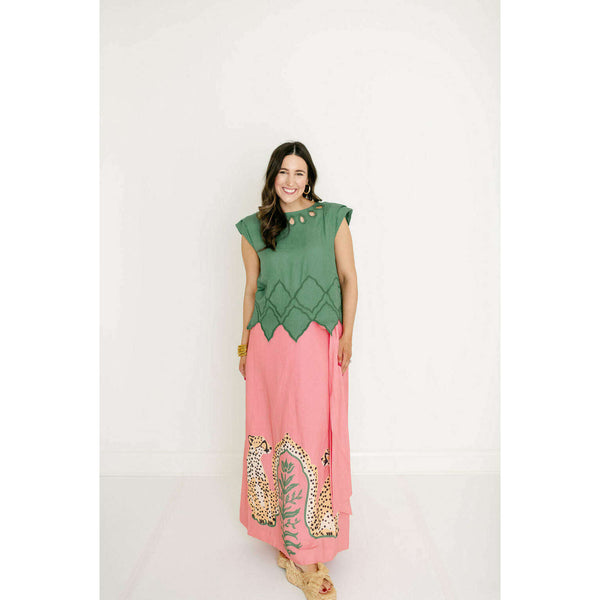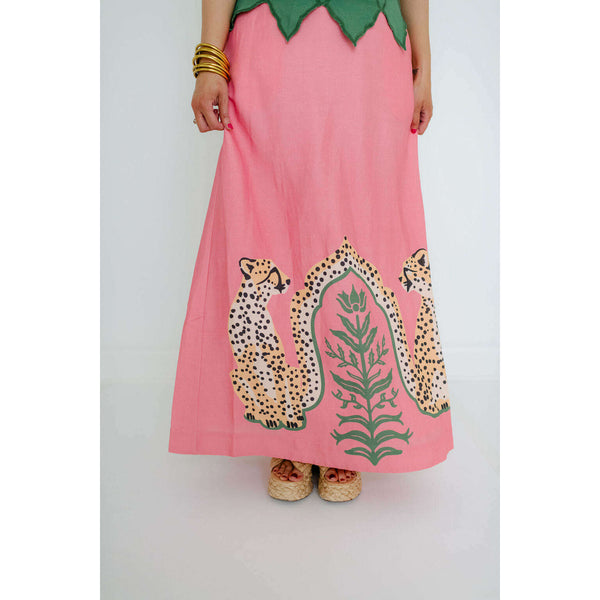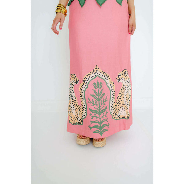 The Emily McCarthy Audrey Skirt in Cabana Cat is a statement in fluid playfulness. Designed with a high-waisted silhouette, it features a pre-tied, tacked bow at the waist and a clean side zip closure for a clean finish. The Cabana...