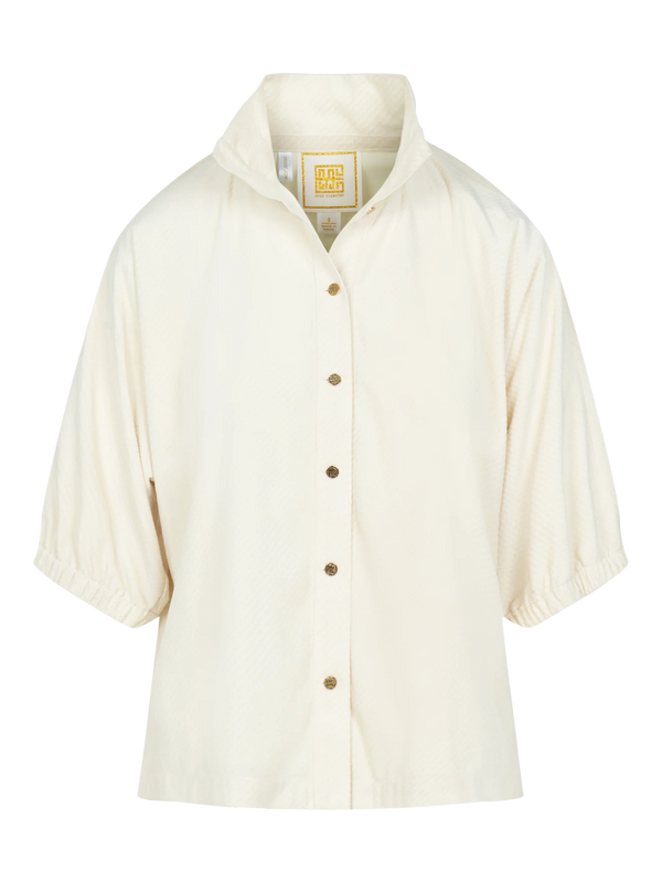 The Emily McCarthy Bonny Top offers a fresh take on the classic Poppy silhouette, reimagined in a textured velvet for added depth and dimension. Designed with a structured stand collar, relaxed elastic dolman sleeves, and a front placket finished with...