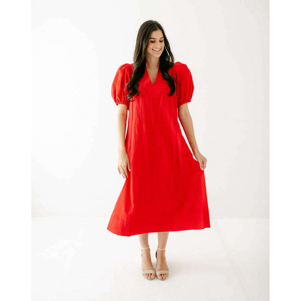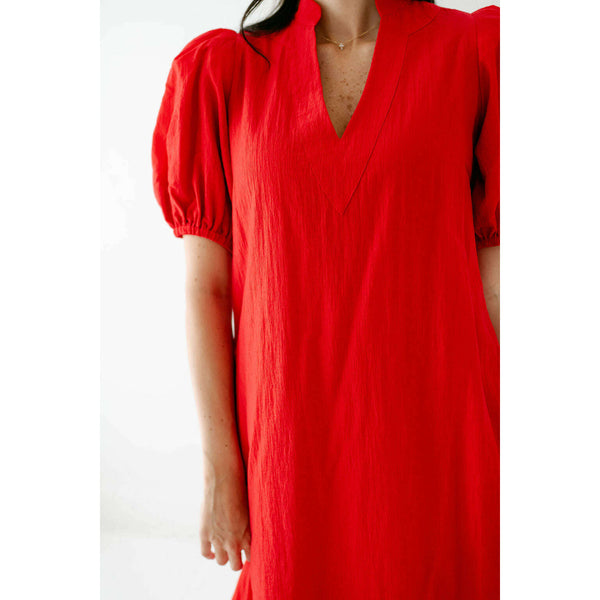 The Hampton Dress in Cardinal Red is crafted from a lightweight organza that moves effortlessly and provides all-day comfort. Designed with a mandarin-style collar, puff sleeves, and side pockets, this loose-fitting silhouette balances ease with refinement. An easy go-to for...