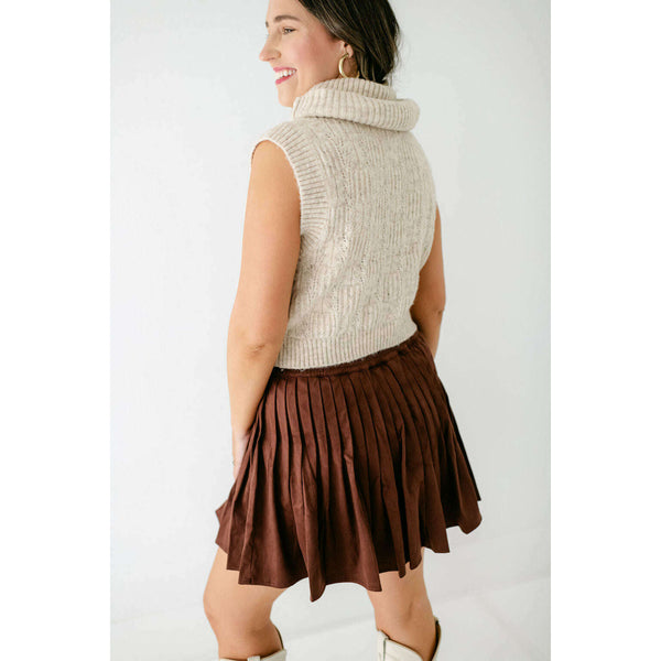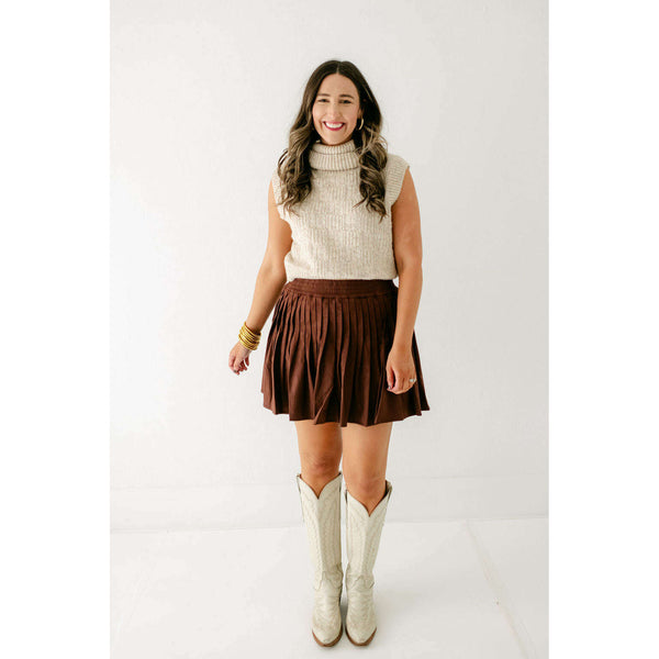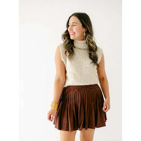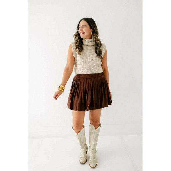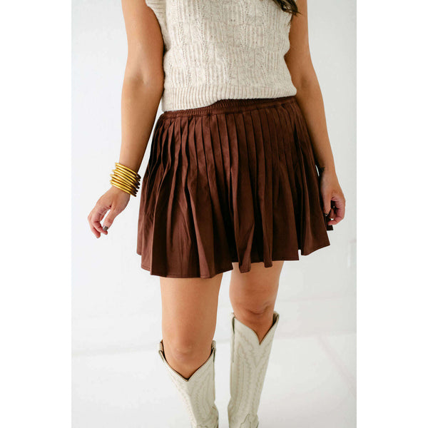The Emily McCarthy Pleated Mini in Bitter Chocolate is equal parts playful and practical. Designed with an elastic waistband for an easy pull-on fit, this skirt features crisp pleats that add movement and dimension. Built-in shorts provide comfort and coverage,...