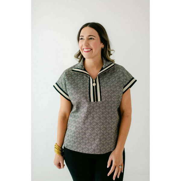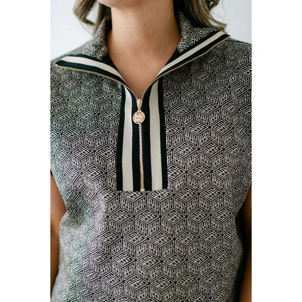 A sporty statement with chic detail, the Poppy Pullover in Black Tonal Monogram features a relaxed dolman sleeve and a 3/4 zip neckline finished with our signature gold zipper pull. Black and white striped trim adds bold contrast, while the...