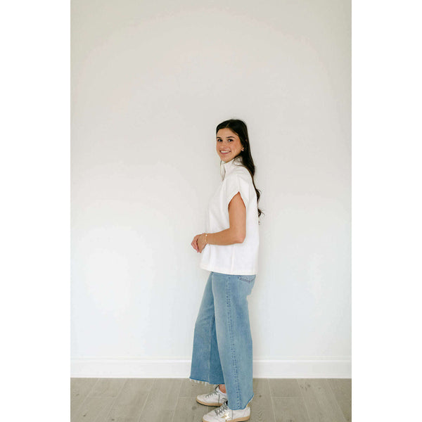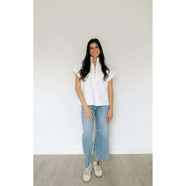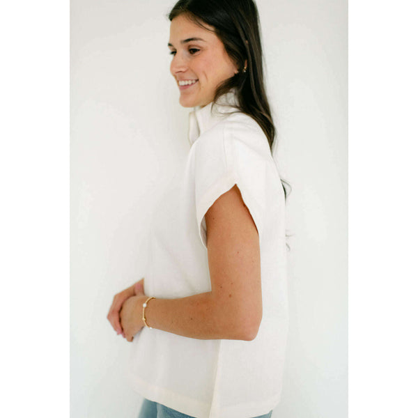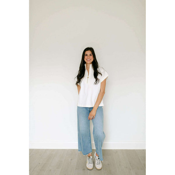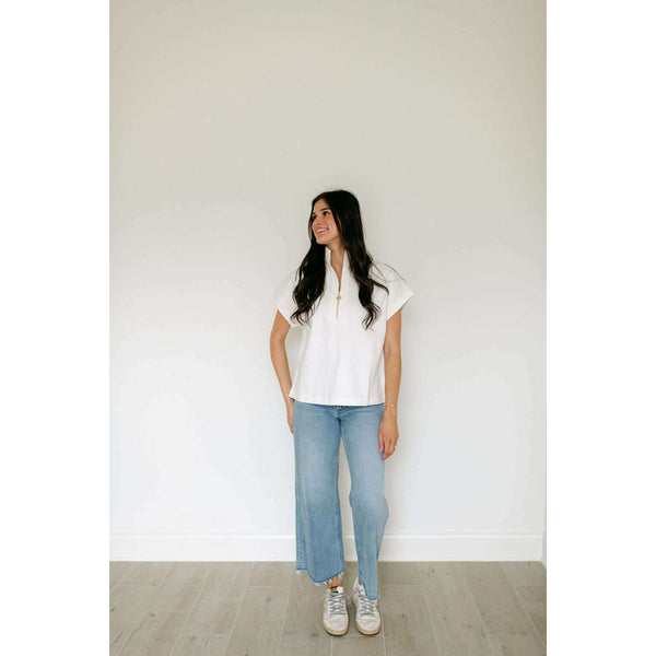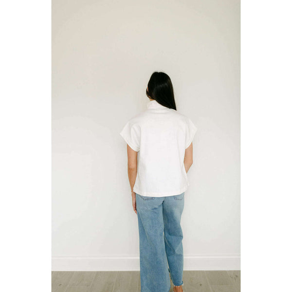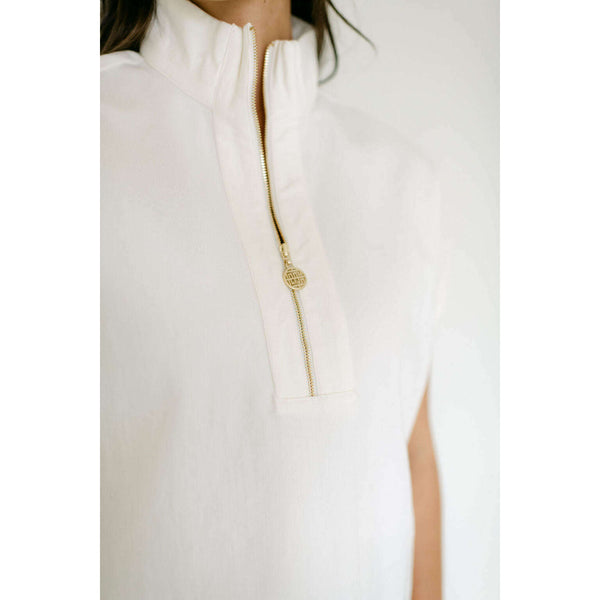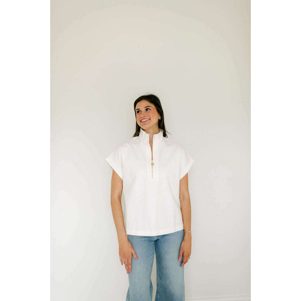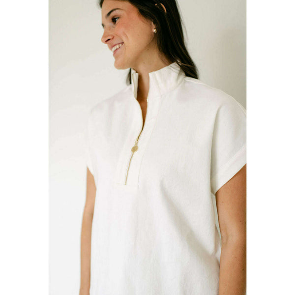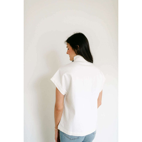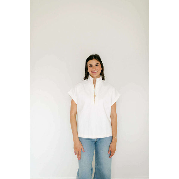 The Emily McCarthy Poppy Pullover in Gardenia Denim is a refined essential designed for effortless everyday wear. Cut in a relaxed yet slightly tailored silhouette, this style features short dolman sleeves and a 3/4 zip neckline finished with our signature...