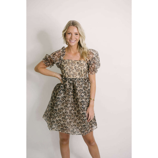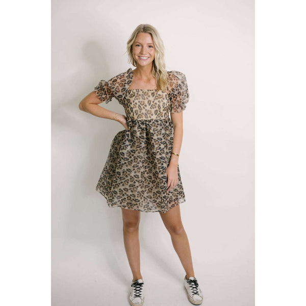 English Factory Organza Leopard Dress Fits true to size, the model is wearing an XS Machine wash on cold