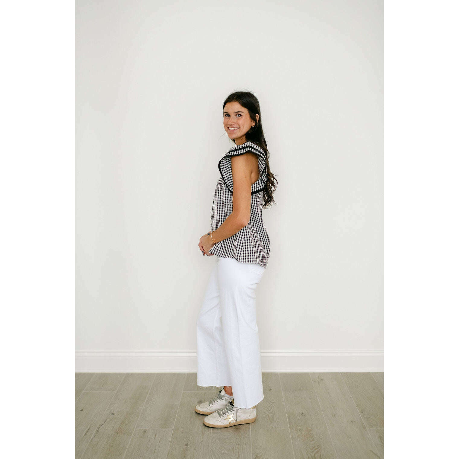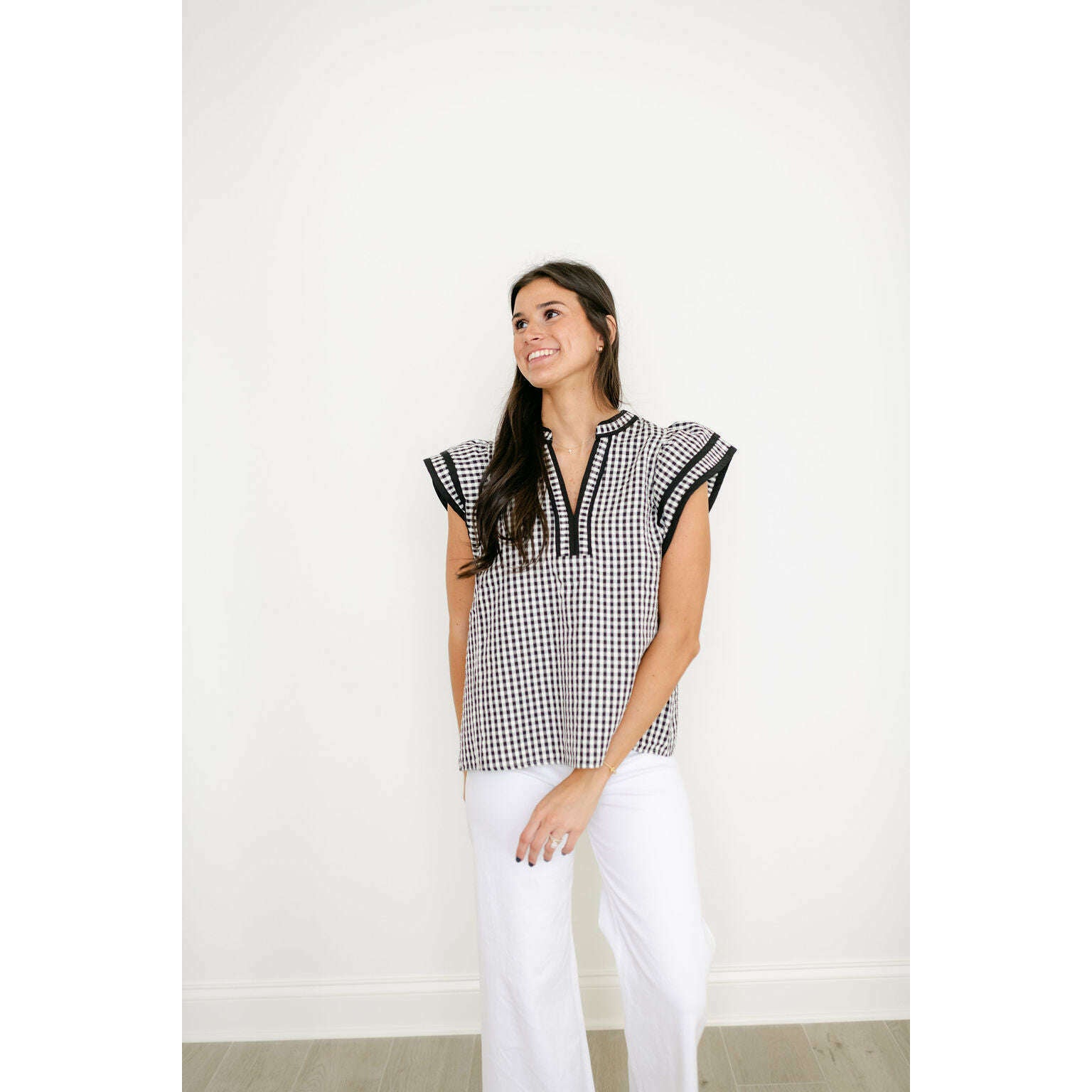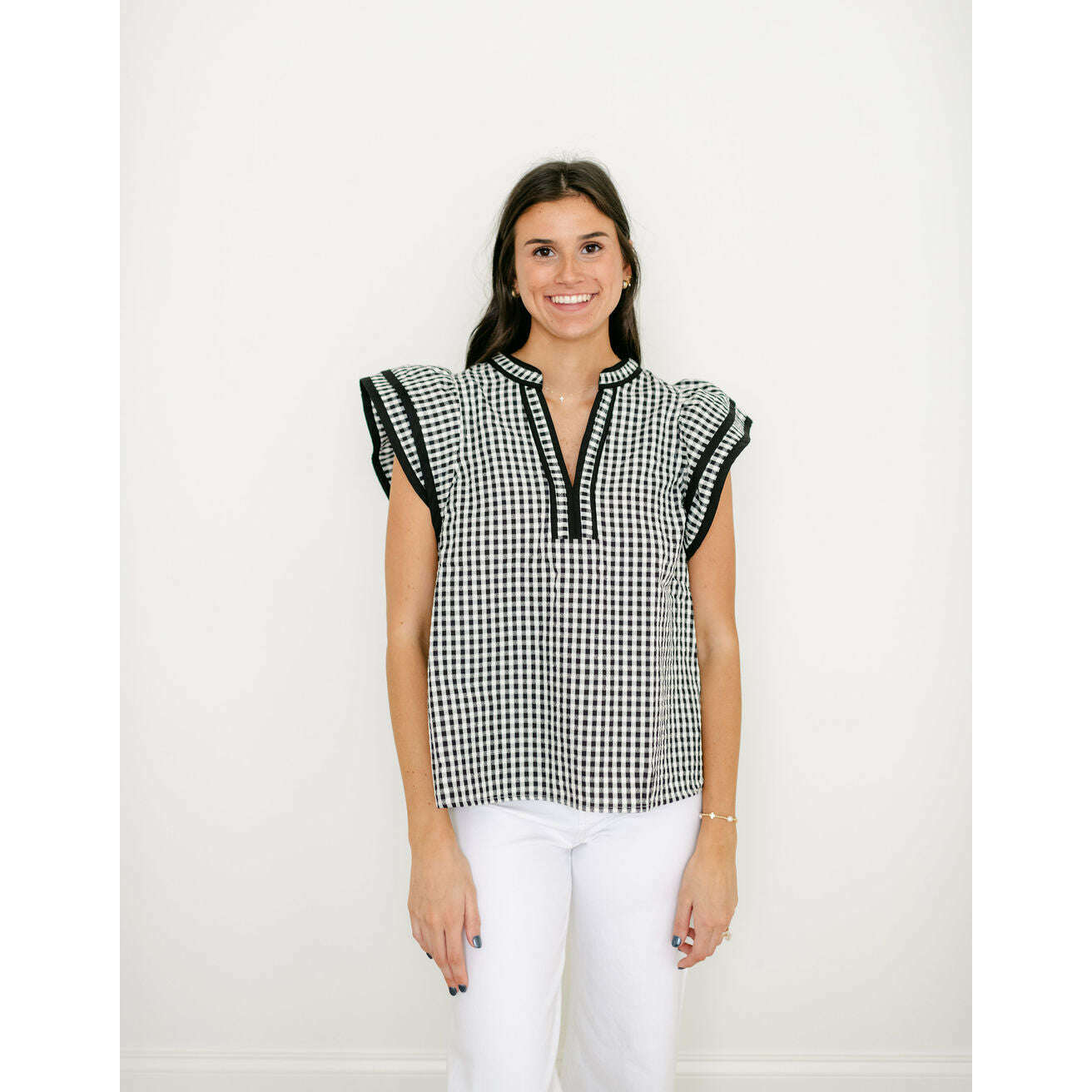 The Entro Black and White Gingham Flutter Sleeve Top is an absolute must-have as you refresh your spring wardrobe with timeless style. Those delicate flutter sleeves and classic gingham pattern create the perfect balance of cute and versatile for any season ahead.
