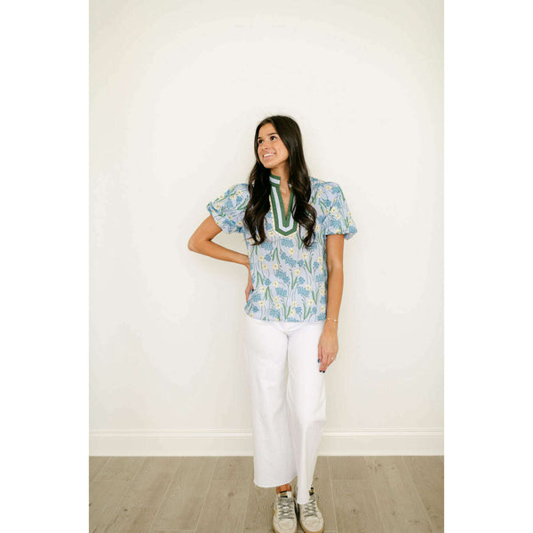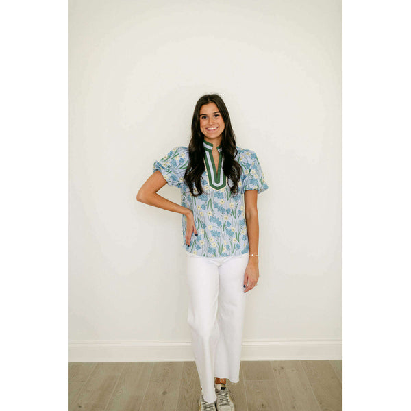 The Entro Blue and Green Floral Scalloped Collar Top brings playful charm to your spring wardrobe with its vibrant floral print and charming scalloped collar detail. This fun piece is perfect for adding a fresh, feminine touch to your seasonal...
