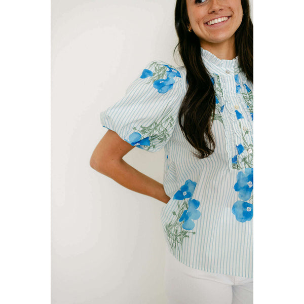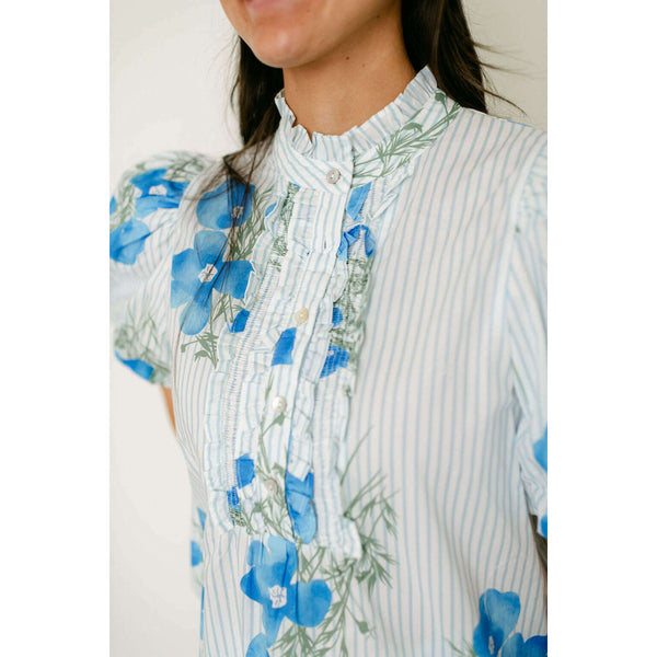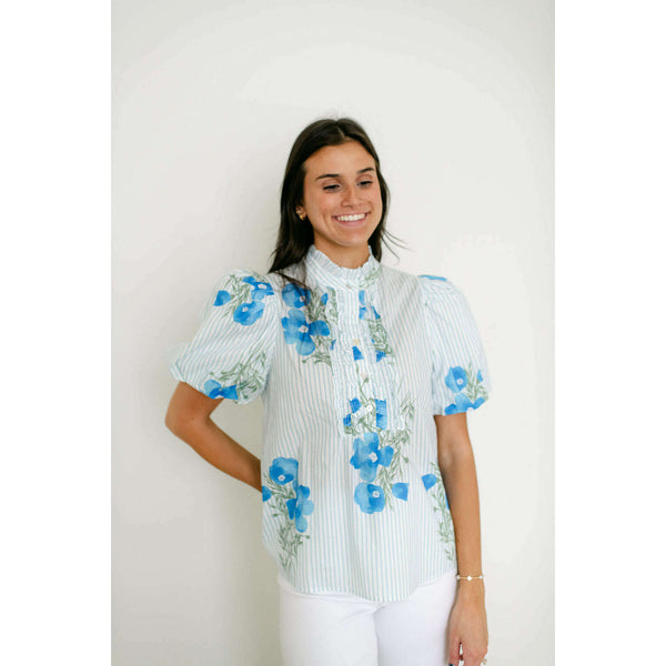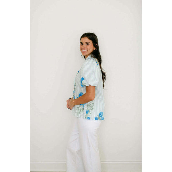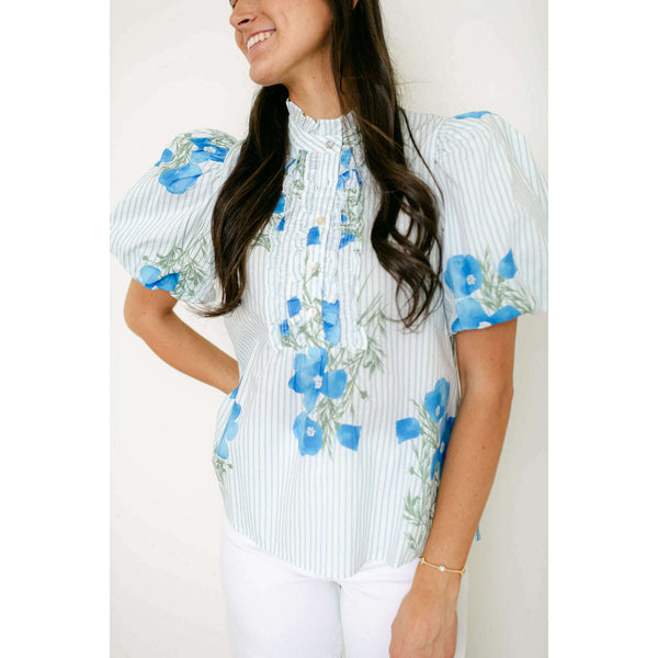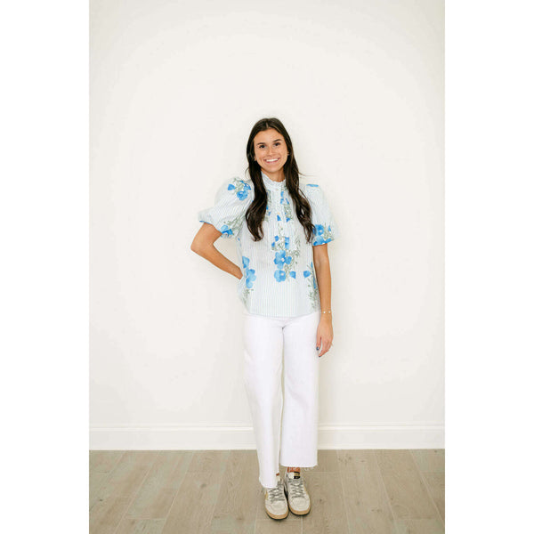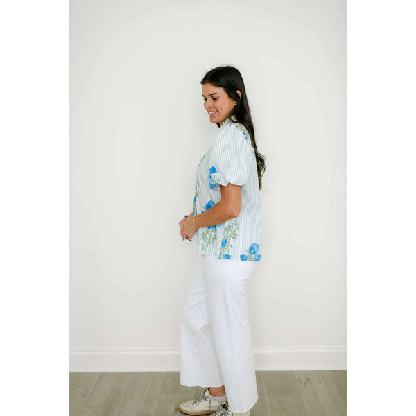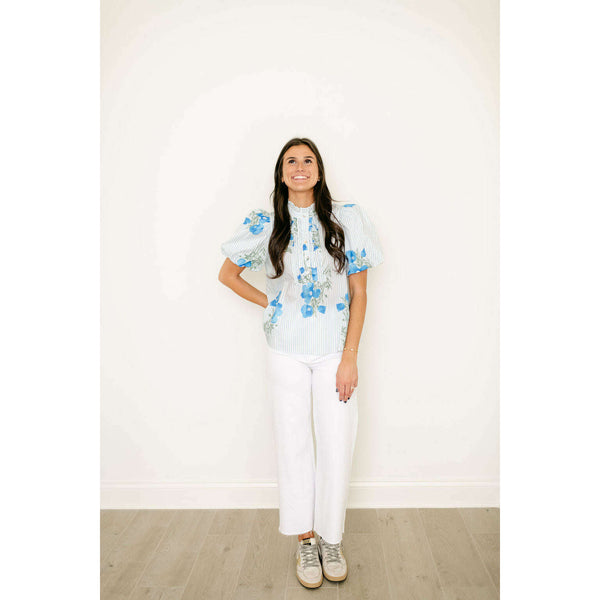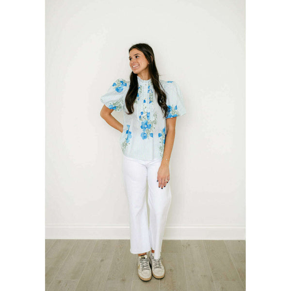 The Entro Light Blue Floral Stripe Ruffle Neck Top combines delicate floral and stripe patterns with a charming ruffle neckline for an effortlessly feminine look. Style it with white denim for a fresh, polished outfit or pair with shorts for...