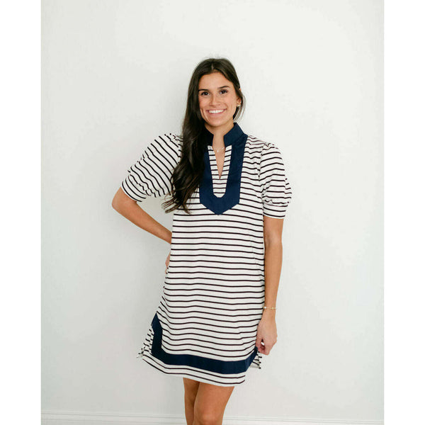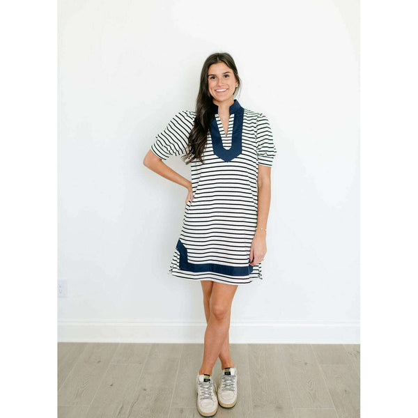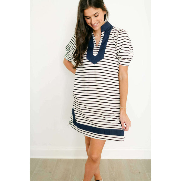 The Entro Navy and White Stripe Dress is the perfect effortless piece for any casual occasion—just slip it on and you're ready to go. With its timeless navy and white stripes, this adorable dress delivers easy style that works whether...
