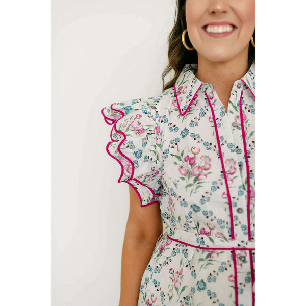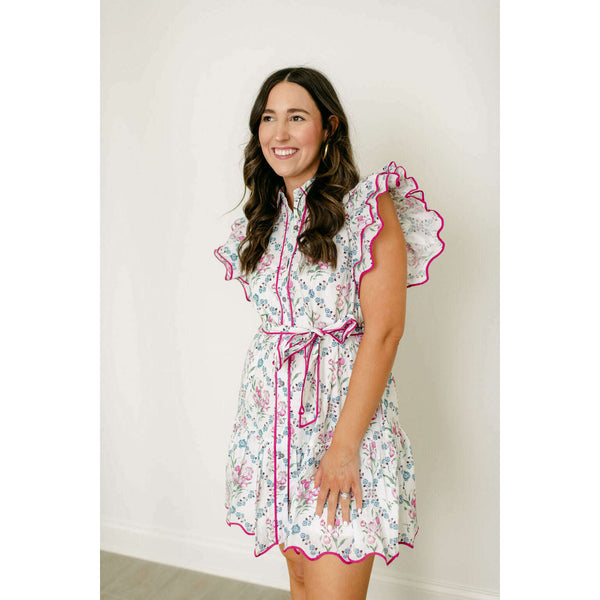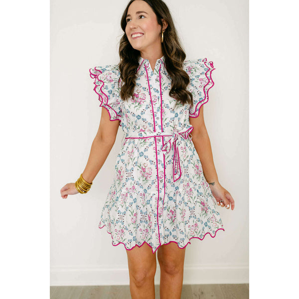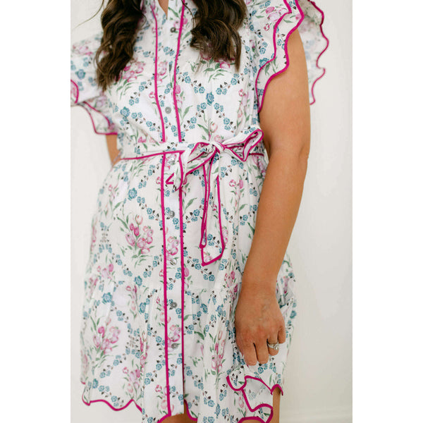 The Entro White Floral Dress with Pink Scalloped Hem brings playful charm to your everyday wardrobe with its cheerful botanical print and eye-catching details. The delicate pink scalloped hem adds a feminine touch that elevates the classic white floral design,...
