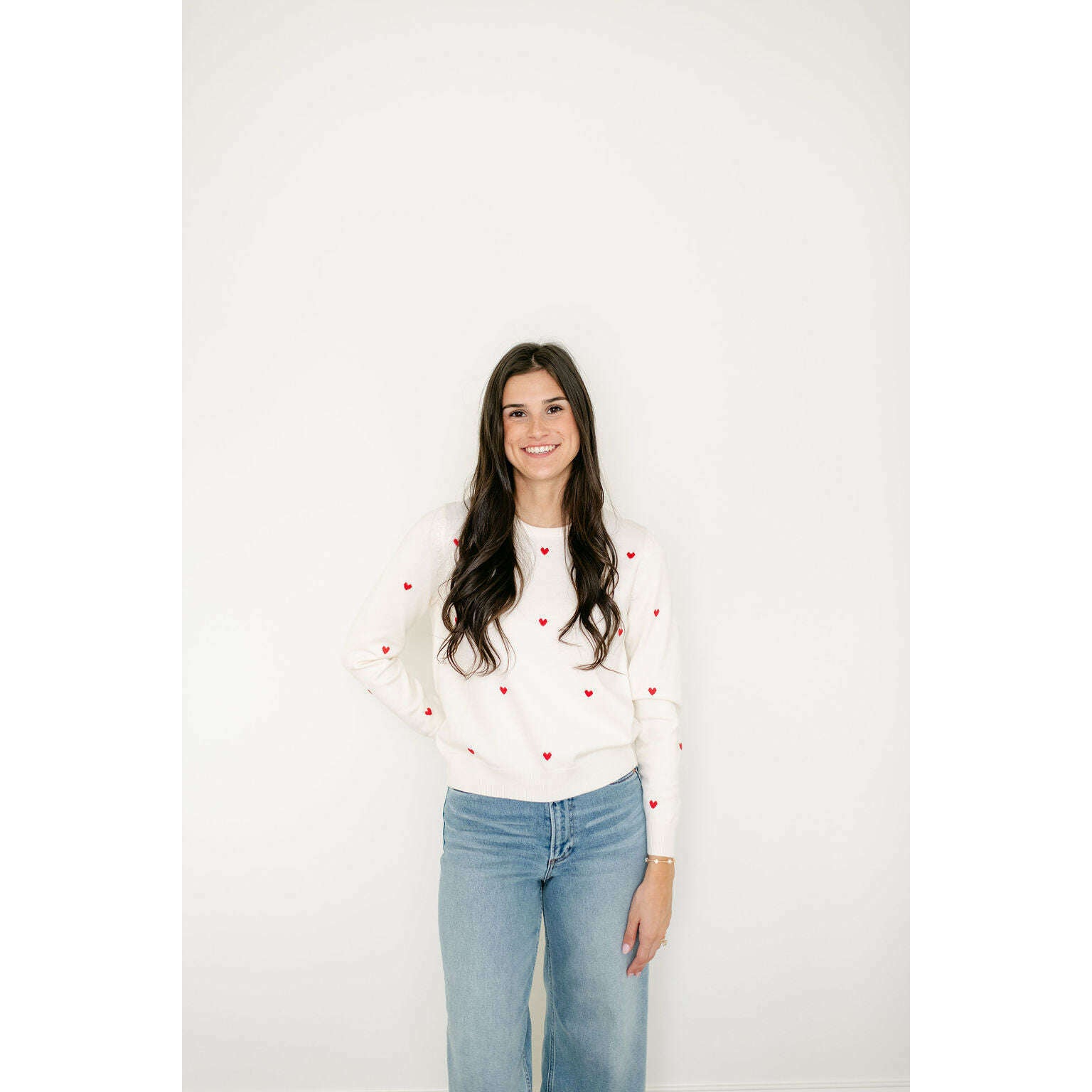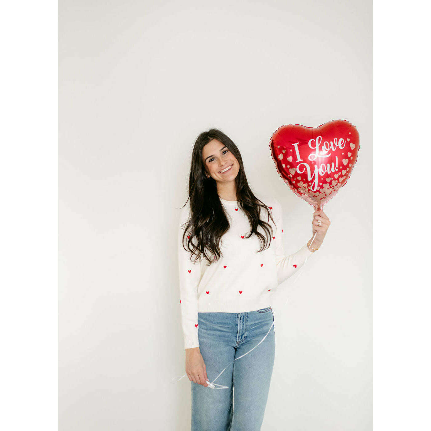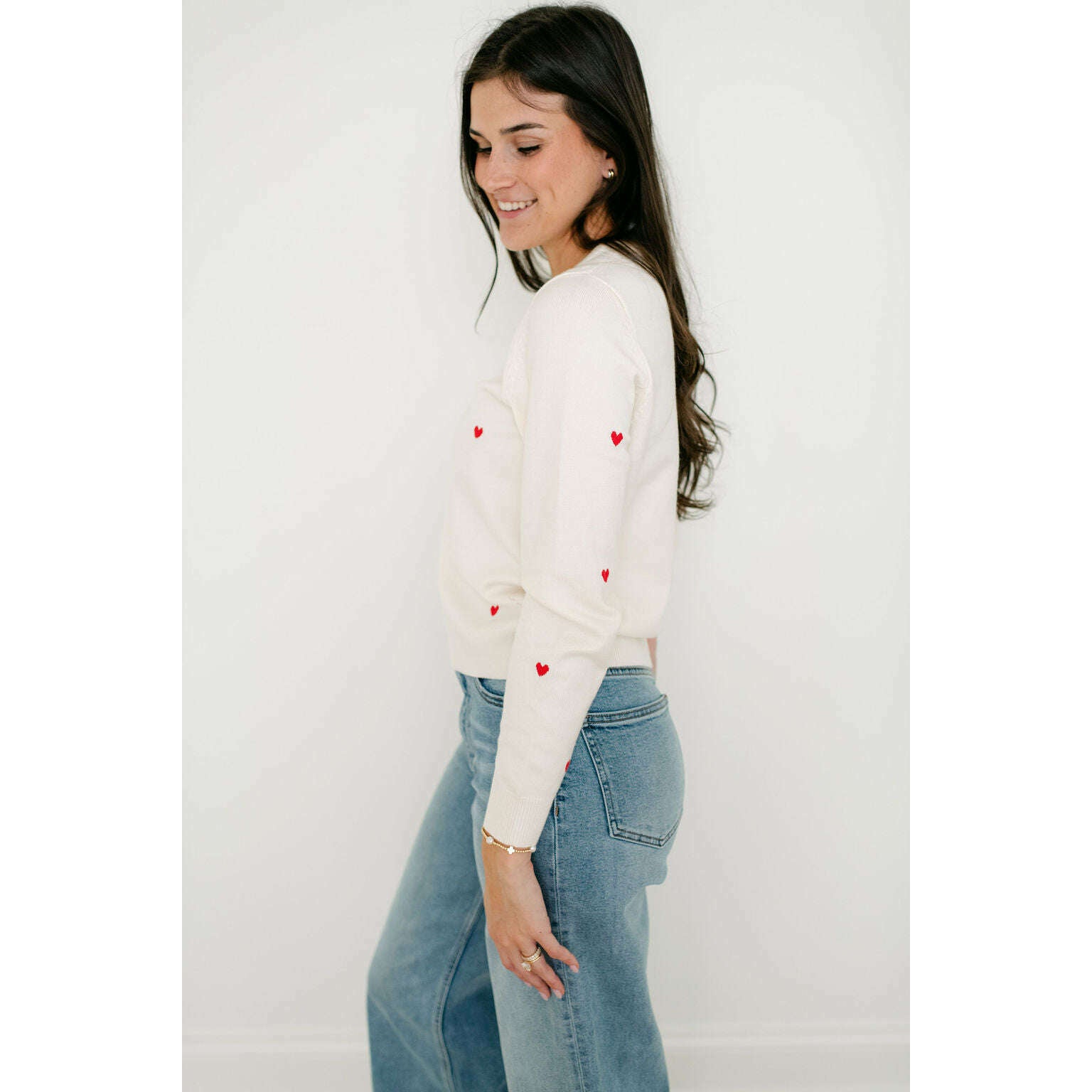 Wrap yourself in this sweet white heart sweater, a charming way to celebrate Valentine's Day with style and comfort. Its cozy design and romantic details make it the perfect gift for someone special or a treat for yourself this season of love.