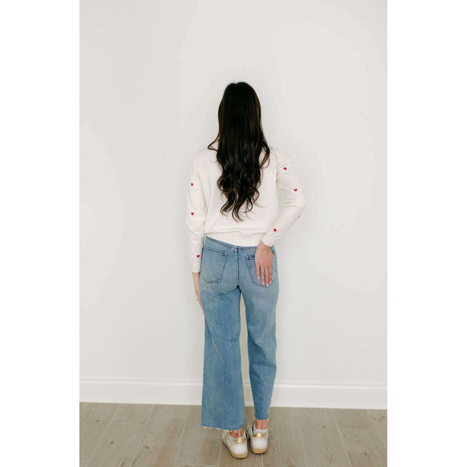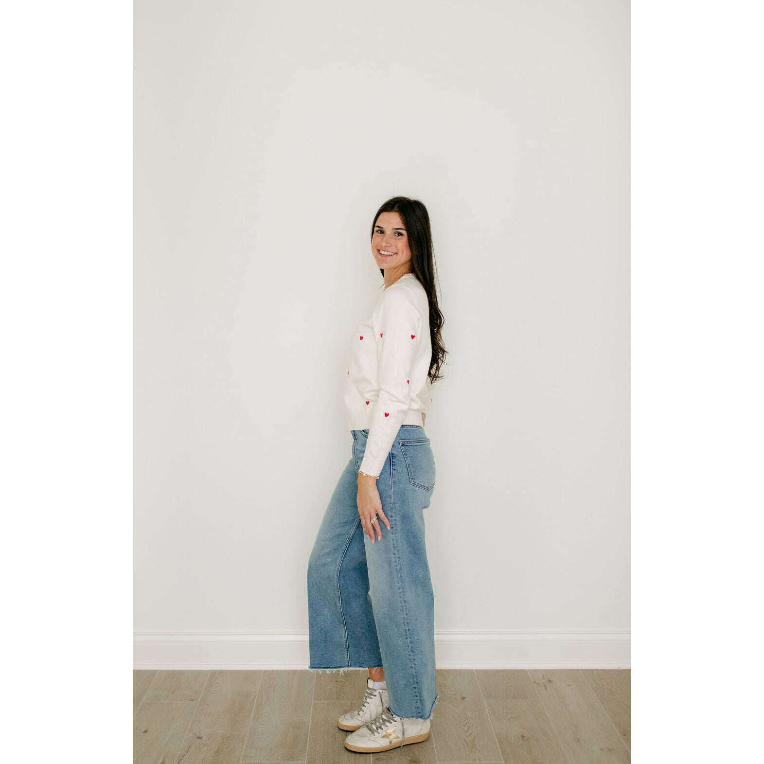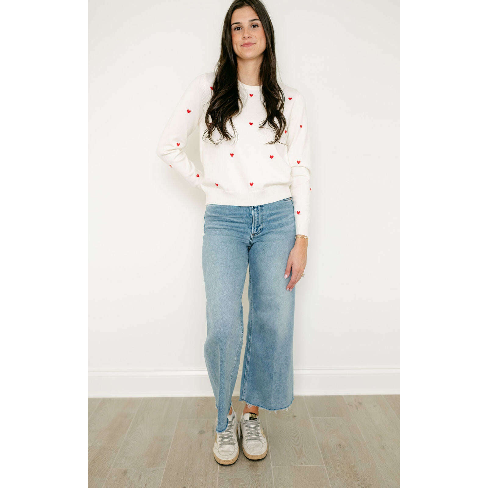 Wrap yourself in this sweet white heart sweater, a charming way to celebrate Valentine's Day with style and comfort. Its cozy design and romantic details make it the perfect gift for someone special or a treat for yourself this season of love.