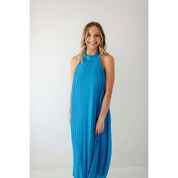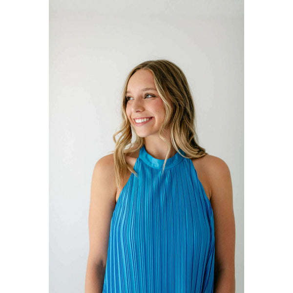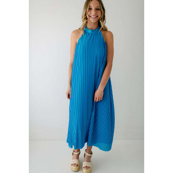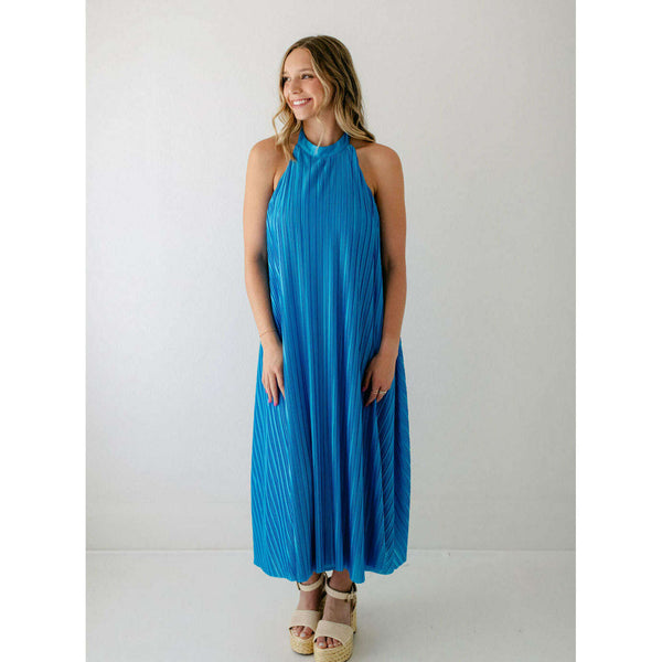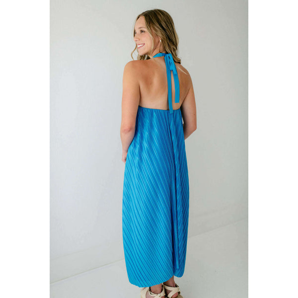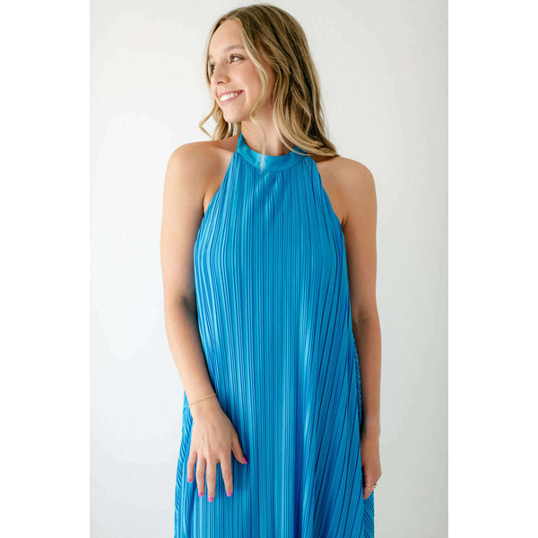 Introducing the FRNCH Manelle Blue Halter Dress - the perfect summer event dress. This pretty piece features a stunning blue color and unique halter detailing. Step out in style and effortlessly turn heads with this must-have dress! Fits true to...