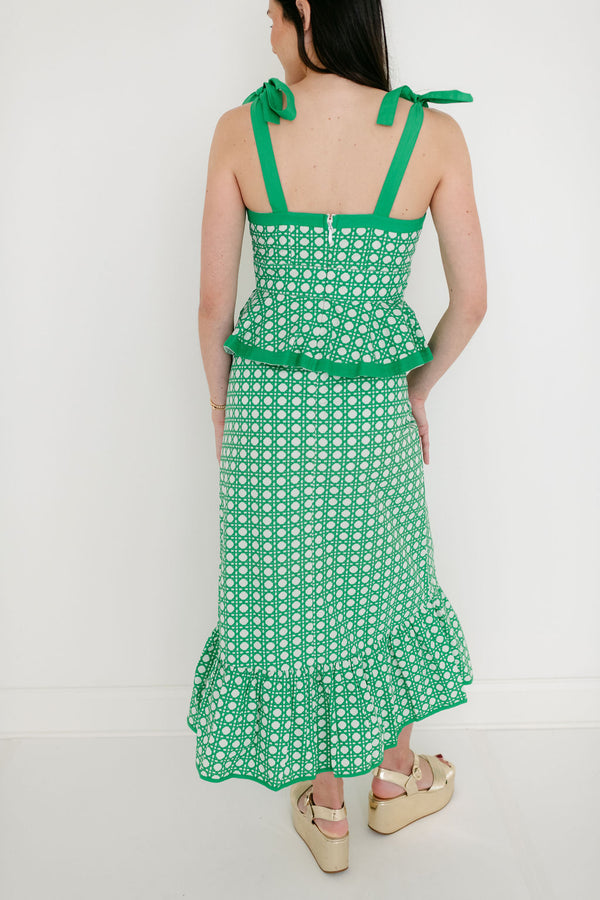 We just LOVE a peplum top!! The peplum is long enough to cover what you want, but offers a flattering flounce. Offered in an emerald green cane print, The Garland Addie Top is made to pair with the Addie Skirt, but...