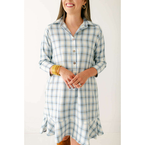 Introducing our Holly Shae Sallie Blue Plaid Dress - the perfect addition to your fall wardrobe. This dress is not only cute and stylish, but also versatile enough to be paired with boots for a full fall look. The blue...