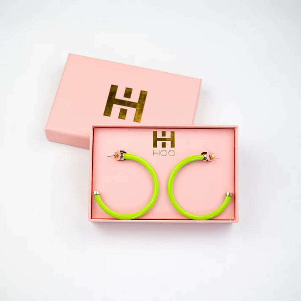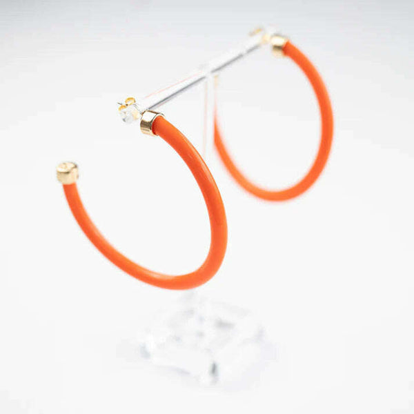 We love our Hoo Hoop earrings! They make a fun statement piece to any outfit. 2 inch hoop Acrylic hypoallergenic posts