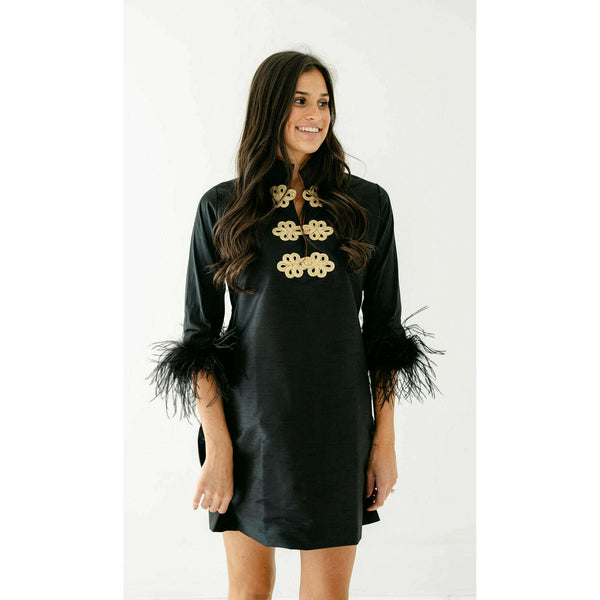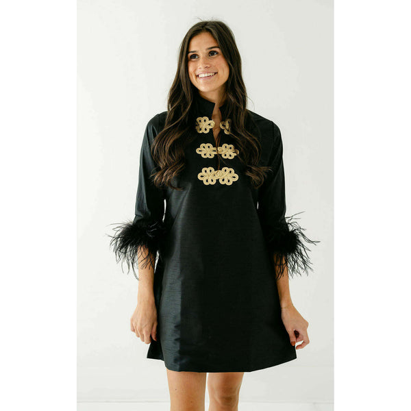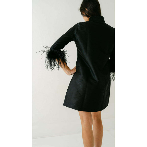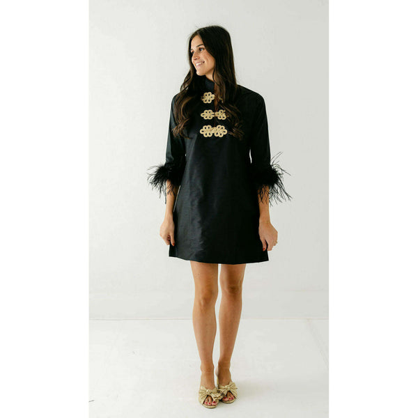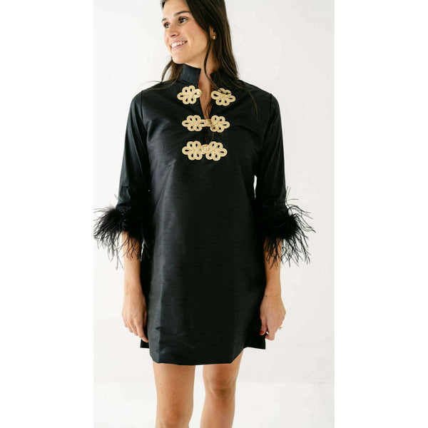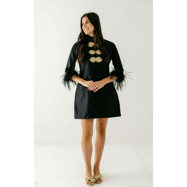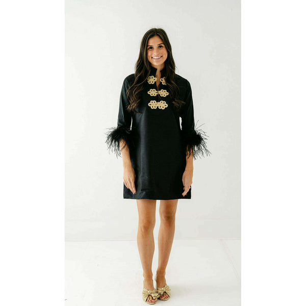 Elevate your holiday wardrobe with the House of MBR Bette Bouvier Short Dress in Black. This charming piece features playful feather detailing that adds movement and texture, making it the perfect choice for festive celebrations. The sleek black silhouette offers...