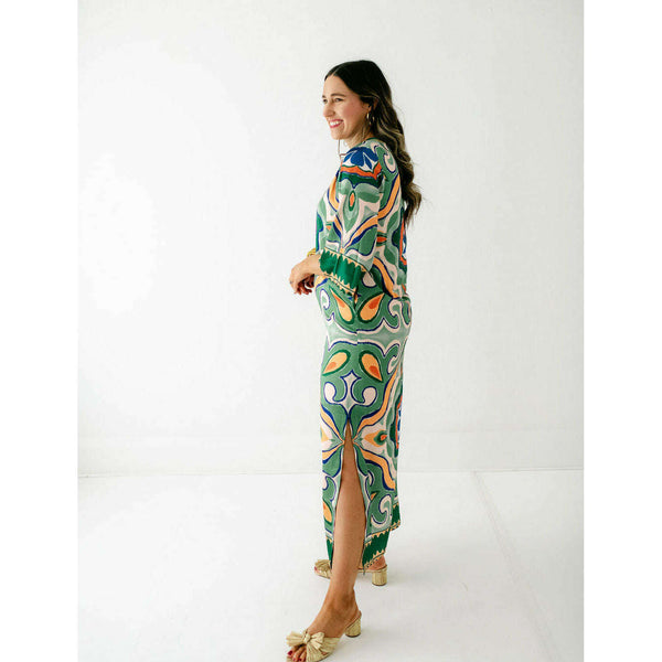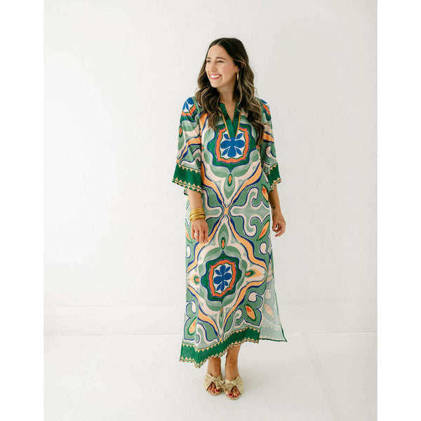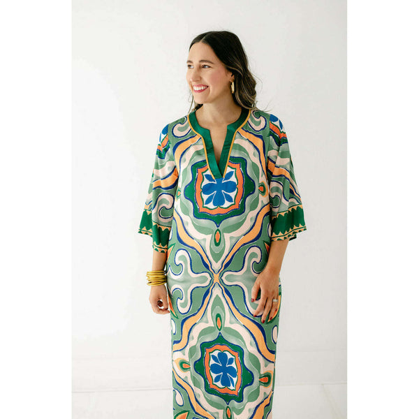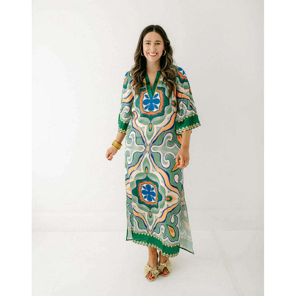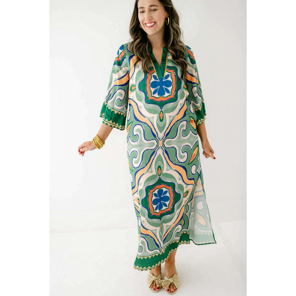 The Jade Melody Tam Moroccan Tile Maxi Dress is a showstopper that transforms any fall occasion into something truly special. With its captivating geometric patterns in rich jade tones and flowing maxi silhouette, this dress combines artistic flair with timeless...