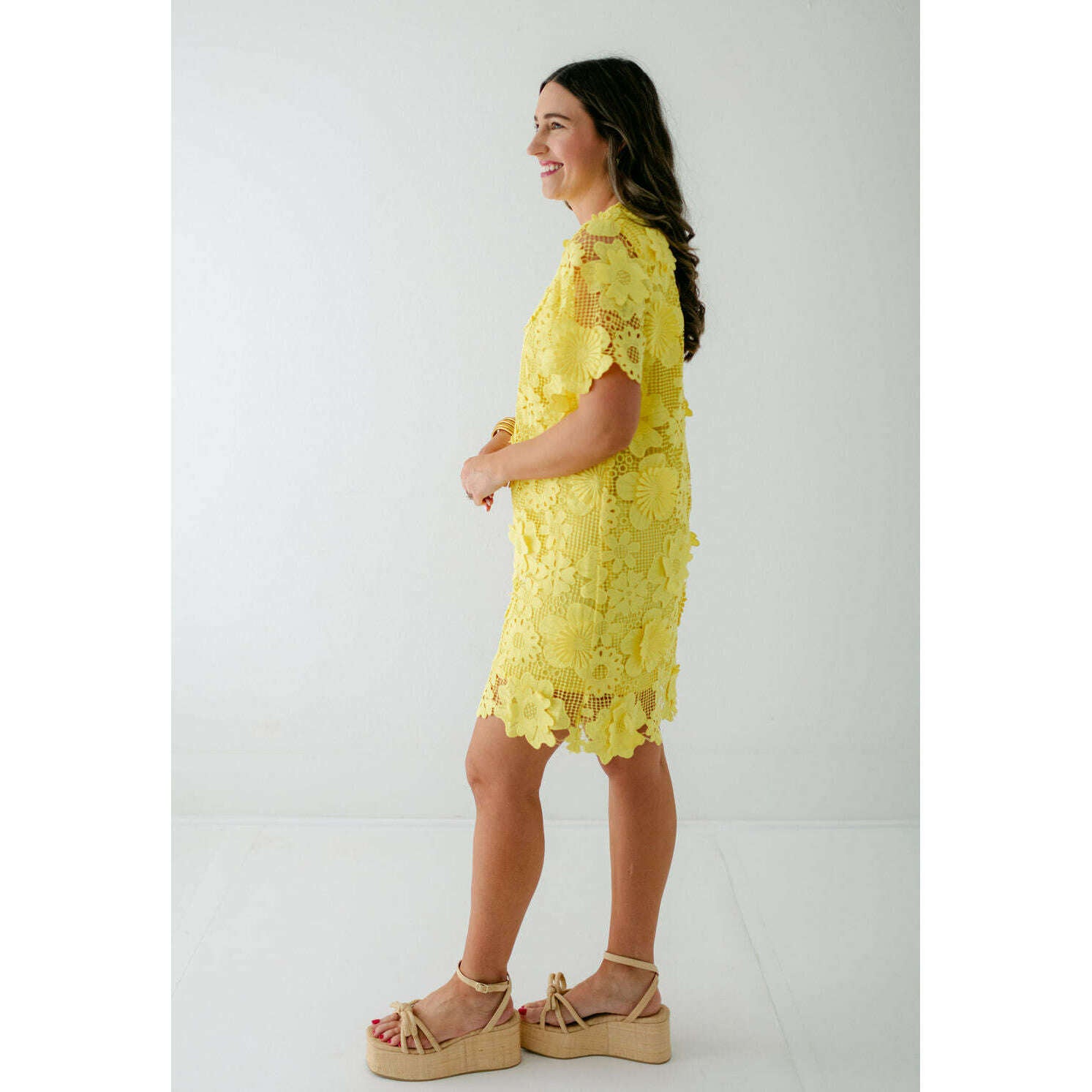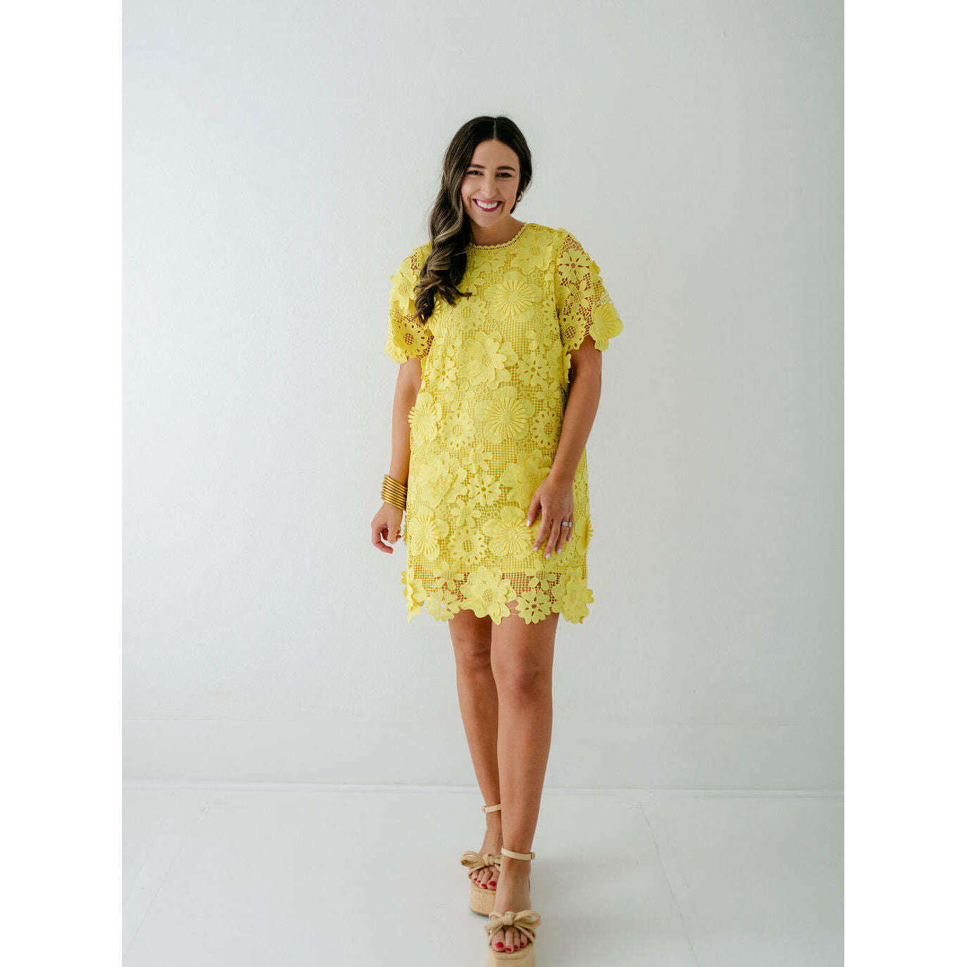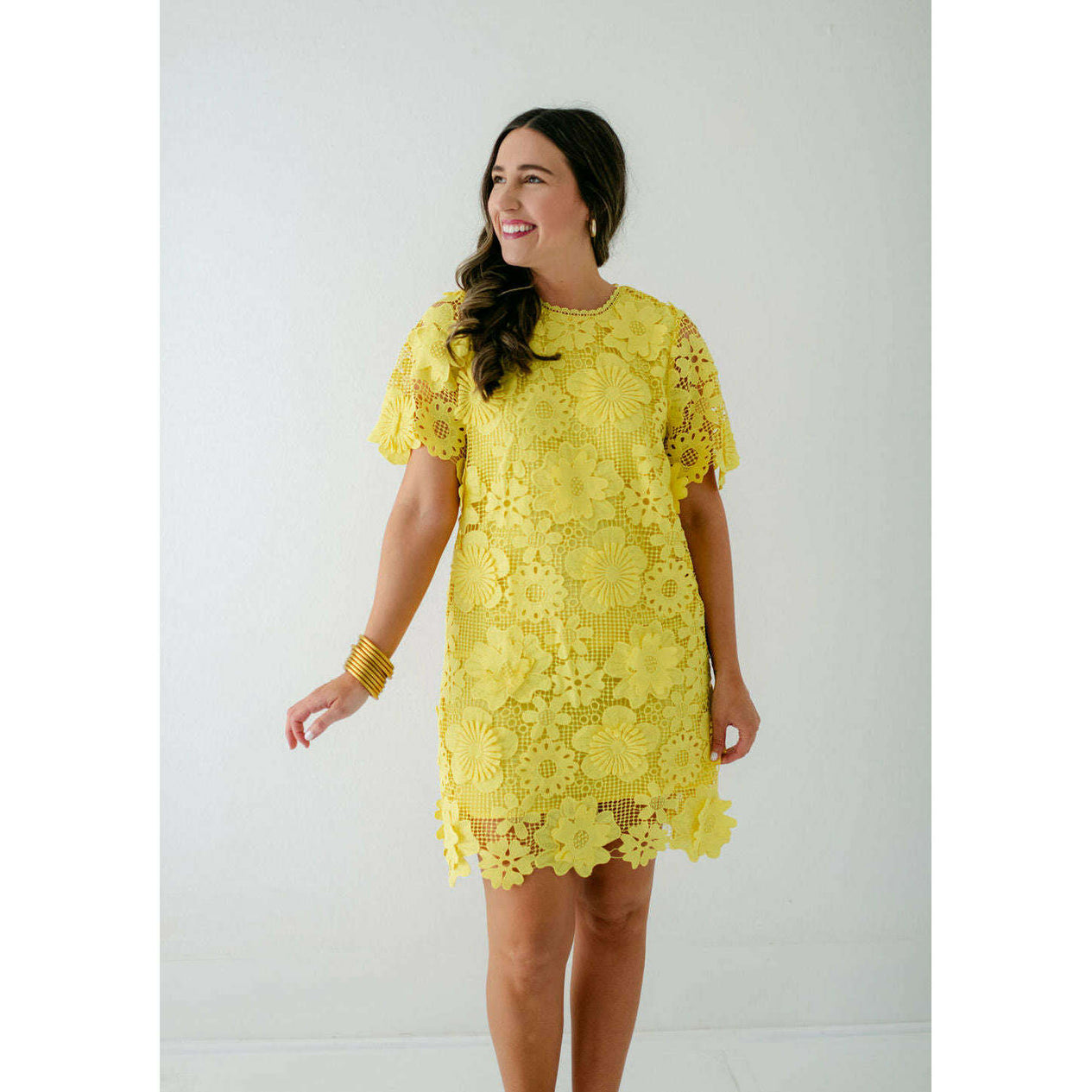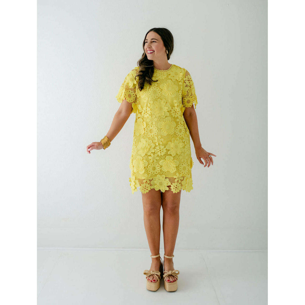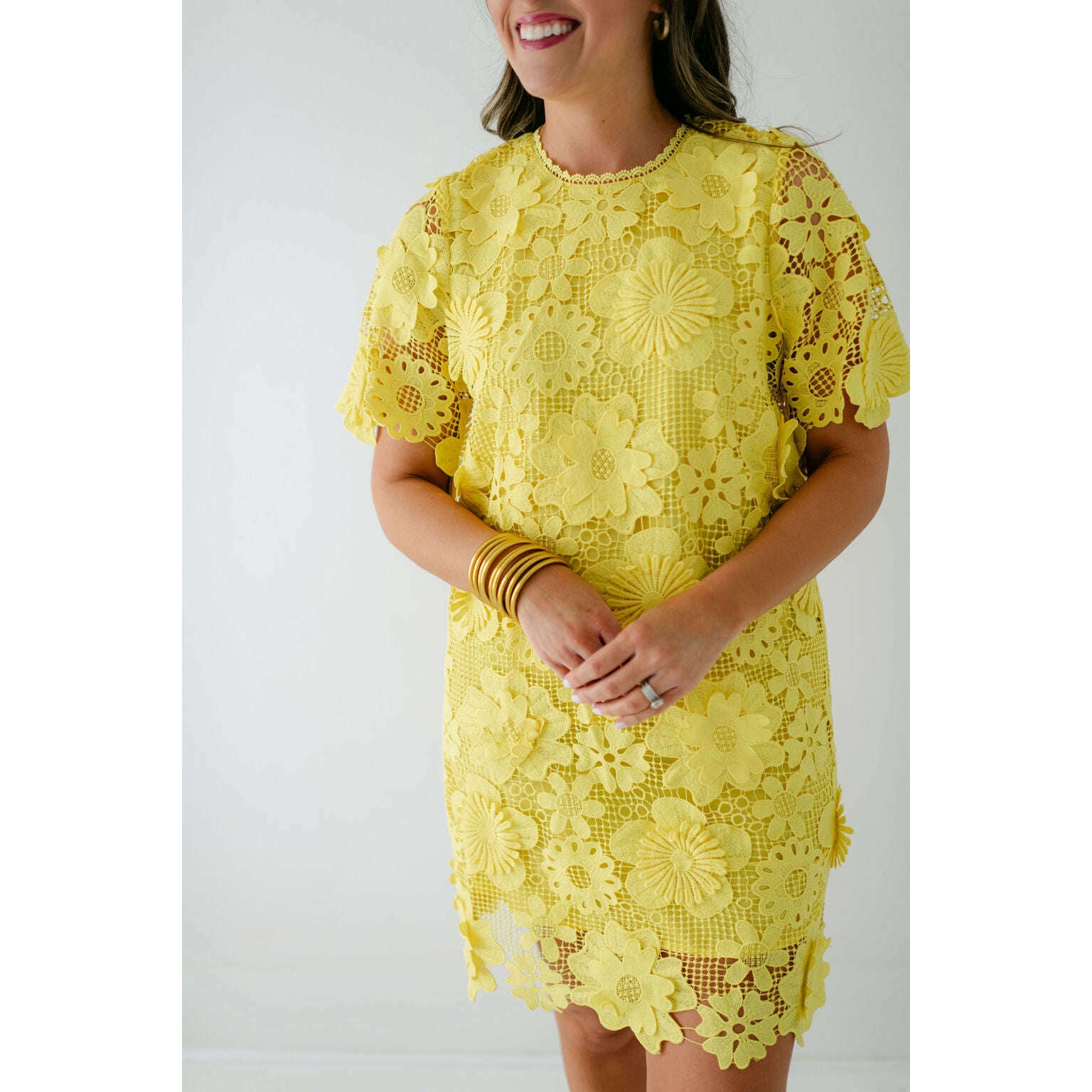 Introducing the Jade Melody Tam Yellow Lace Dress in Chemise! This stunning dress features intricate lace detailing and a beautiful yellow hue, making it the perfect choice for any spring or summer occasion. From weddings to Easter, this dress is sure to turn heads and make you feel confident and stylish.
