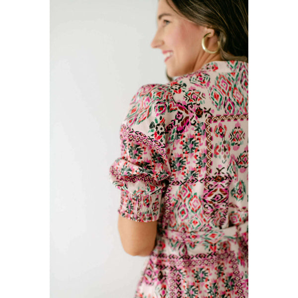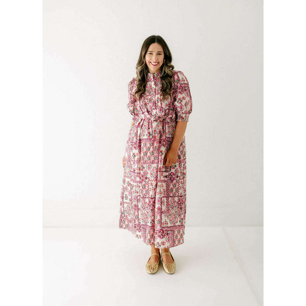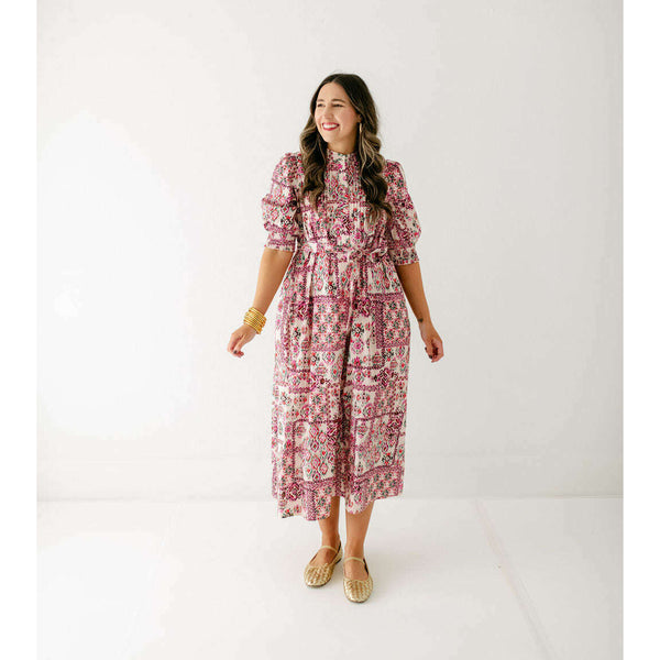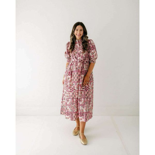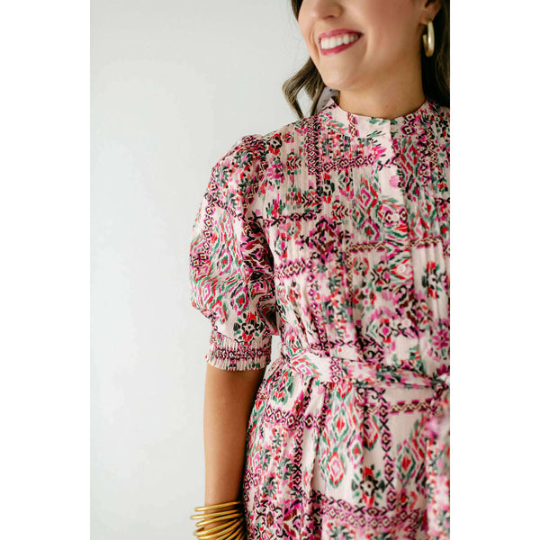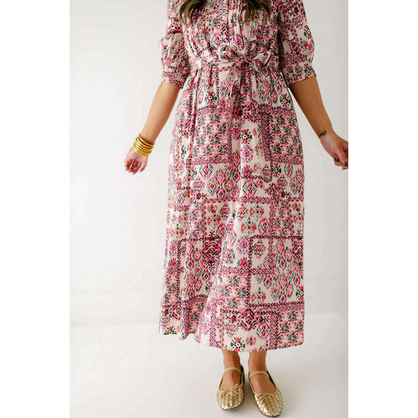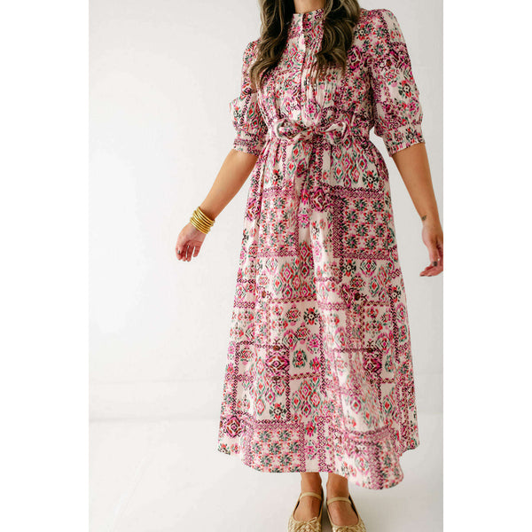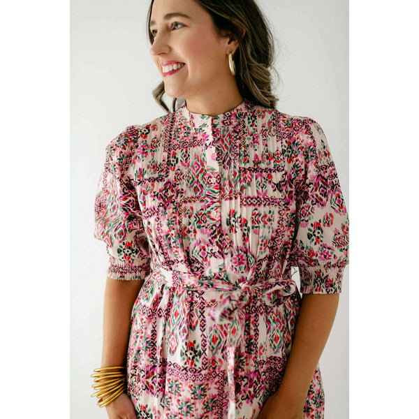 Embrace autumn in the Joy*Joy Pin Tuck Maxi Dress, crafted from rich woven tapestry fabric. Its vibrant, playful colors bring warmth and charm to any fall occasion, while the delicate pin tuck detailing enhances its elegant silhouette. Perfect for layering...