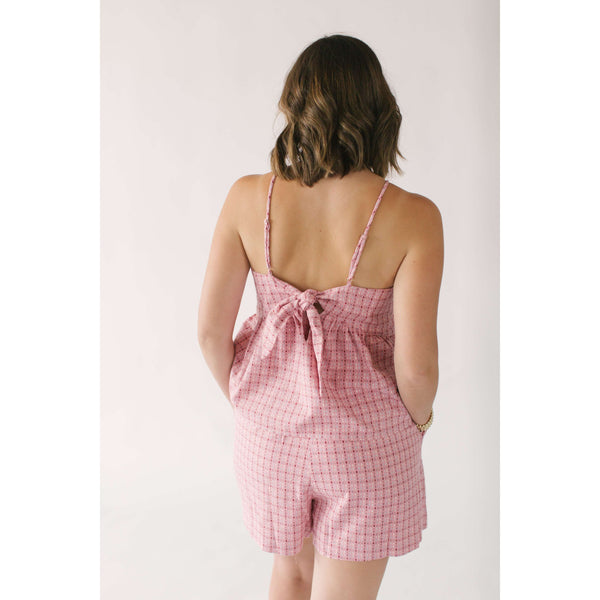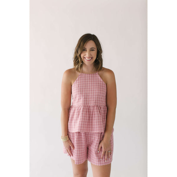 Joy*Joy Pink Jacquard Halter Tie Back Top