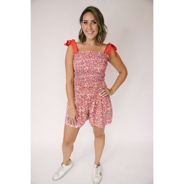 How cute is our Joy*Joy Red Flowers Smocked Tie Top?! This is the perfect piece for summer, especially when paired with our Joy*Joy Red Flower Smocked Waist Shorts as a full set! Fits true to size, Emily is wearing a...