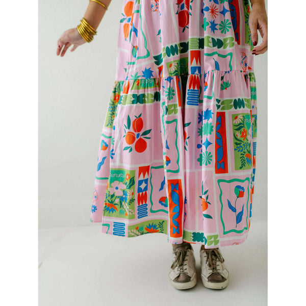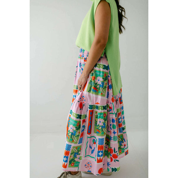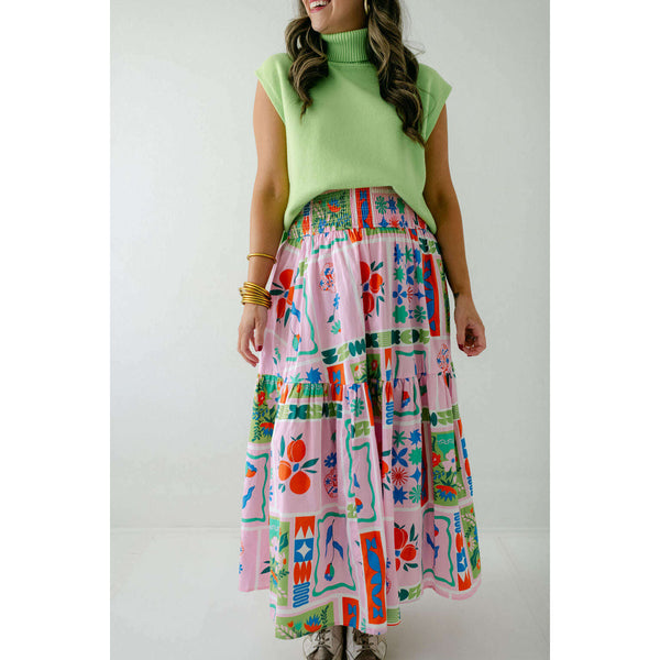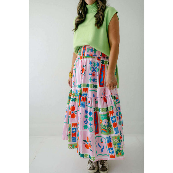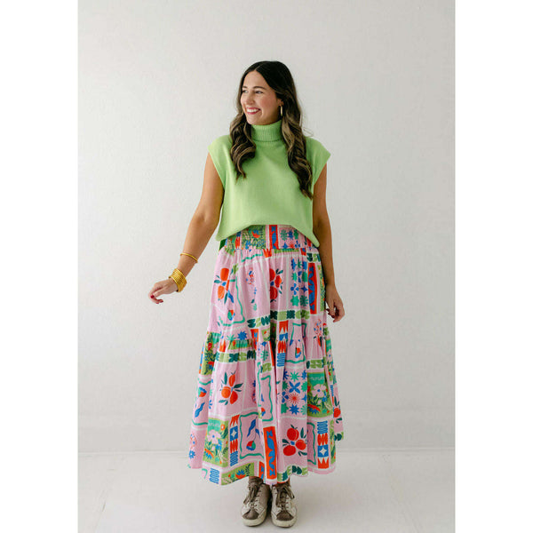 The Karlie Artist Floral Frame Smock Tiered Maxi Skirt is irresistibly cute with its vibrant floral print and flattering smocked waist. Its tiered design adds movement and elegance, making it perfect for day-to-night wear. Pair it with our Karlie sleeveless...