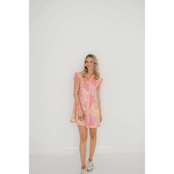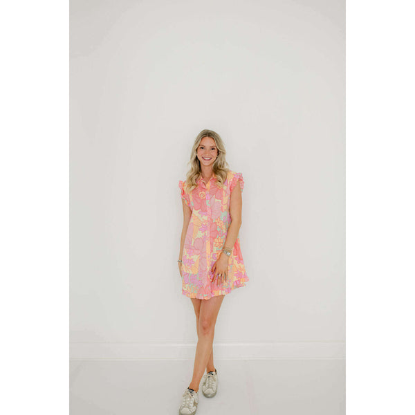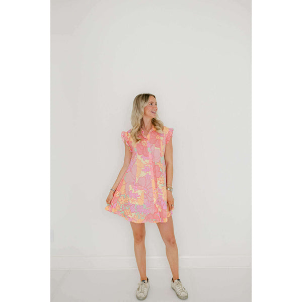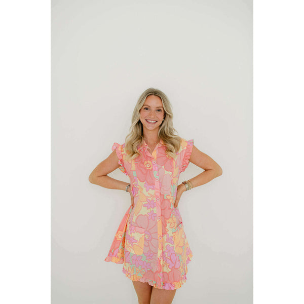 The Karlie Big Floral Pastel Ruffle Sleeveless Dress features a charming floral print in soft pastels with delicate ruffle details that add feminine flair. This sleeveless style offers a comfortable, flattering fit that's perfect for spring and summer occasions. Fits...