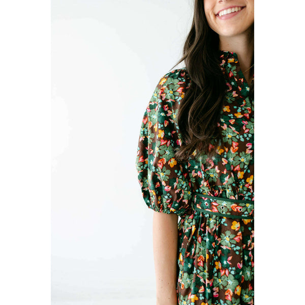 The Karlie Brown Floral Belt Shirt Dress combines timeless shirt dress styling with a delightful botanical print that brings joy to your seasonal wardrobe. Its coordinated belt creates a defined waistline while adding an extra layer of sophistication to this...